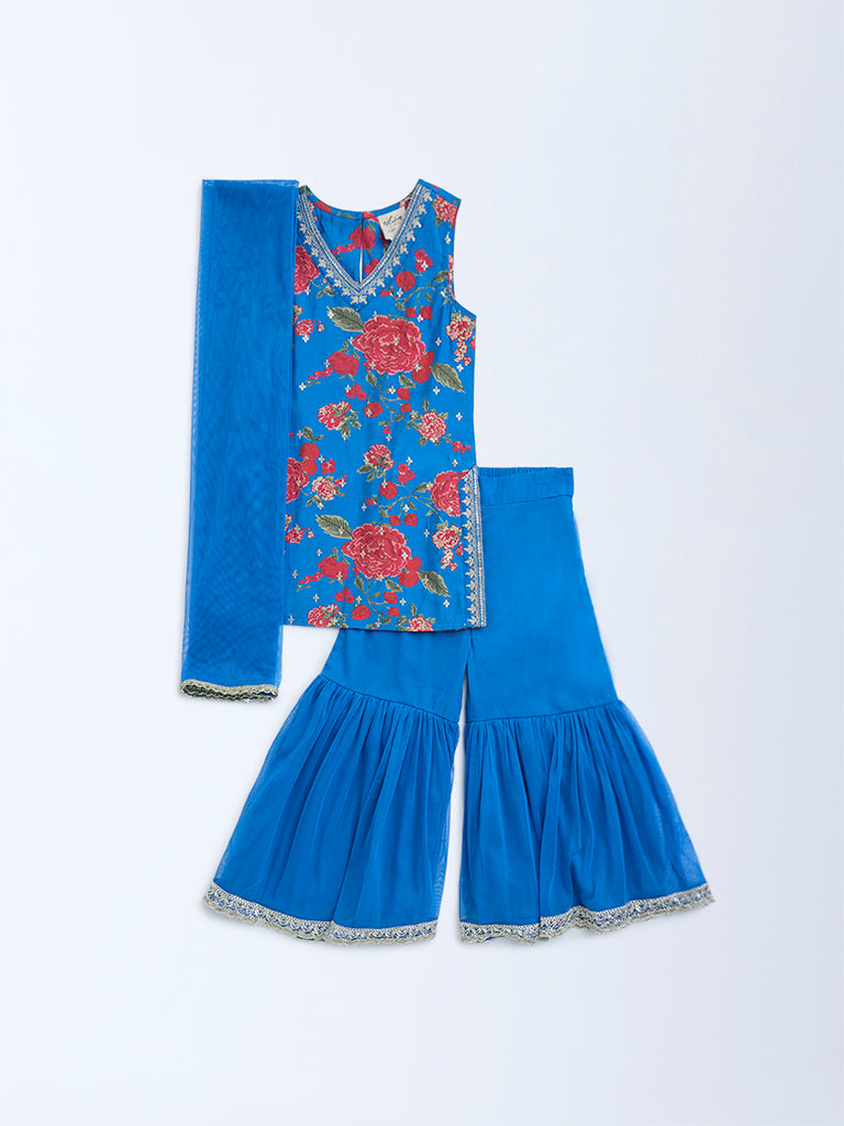 Utsa Kids Blue Floral Pattern Straight Ethnic Set – (2-8yrs)