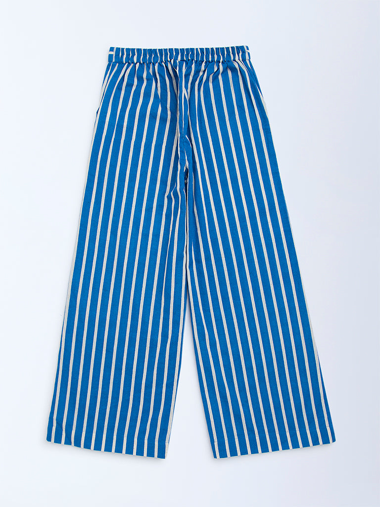 Utsa Kids Blue Striped Cotton-Blend Pants – (8-14yrs)