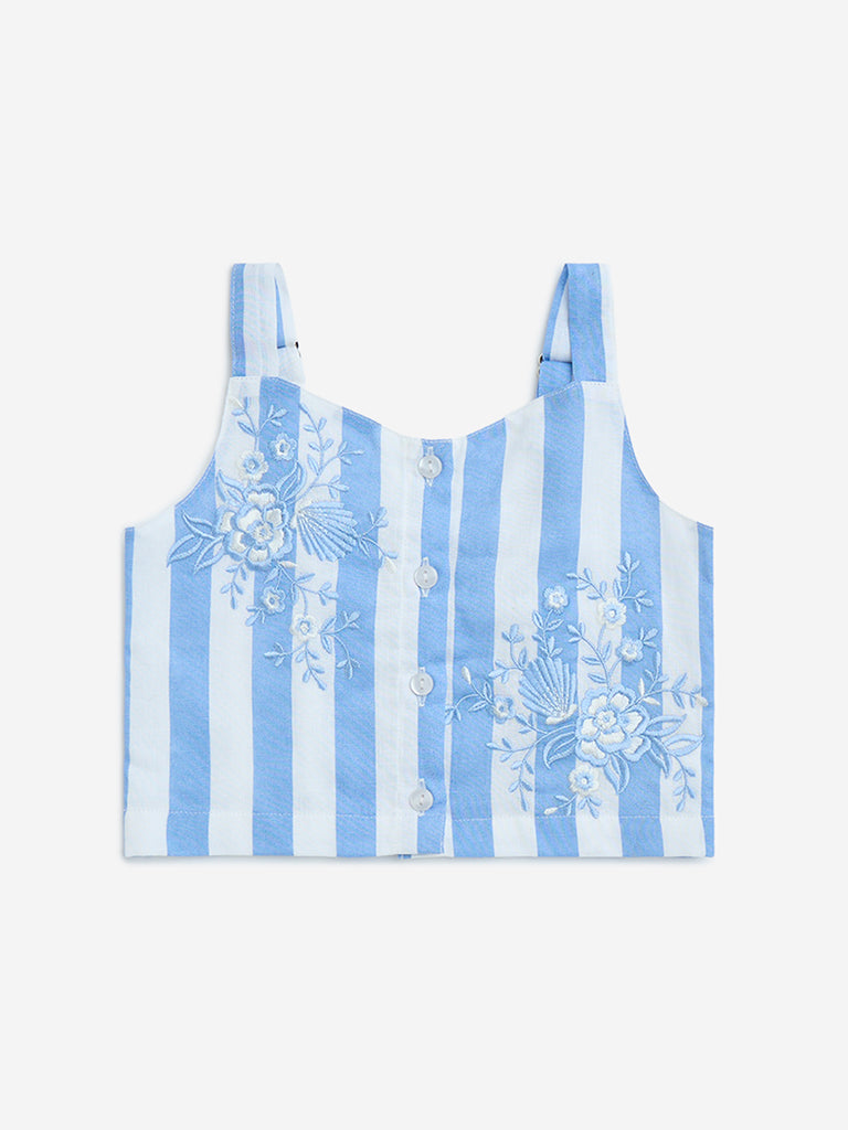 Utsa Kids Blue Striped Cotton-Blend Top – (2-8yrs)
