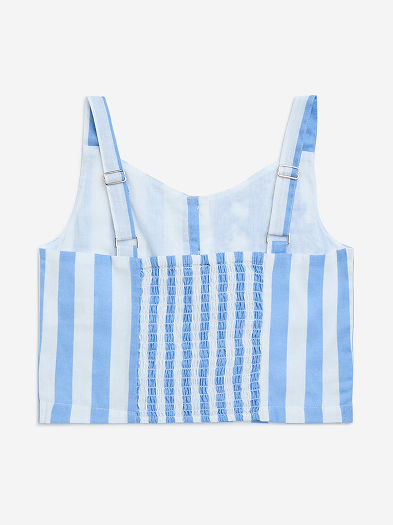 Utsa Kids Blue Striped Cotton-Blend Top – (8-14yrs)