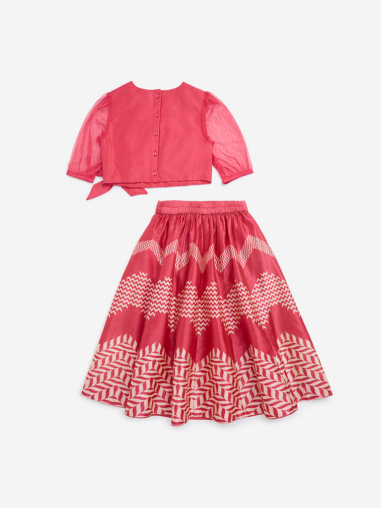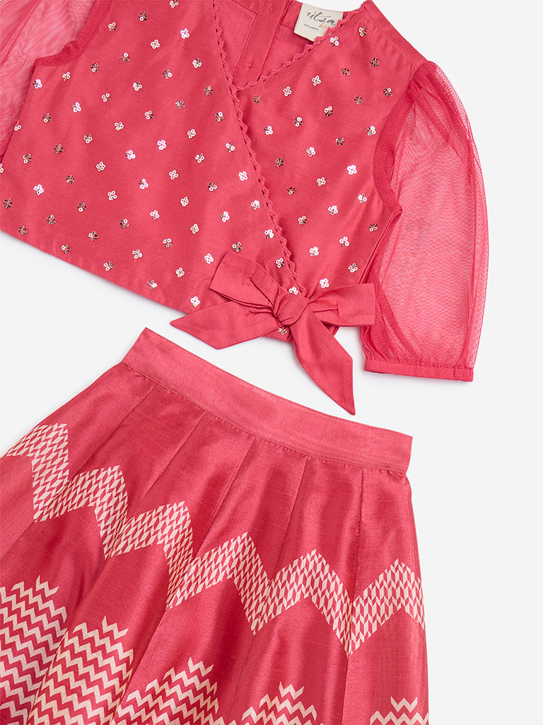 Utsa Kids Coral Chevron Design Top and Skirt Set – (2-8yrs)