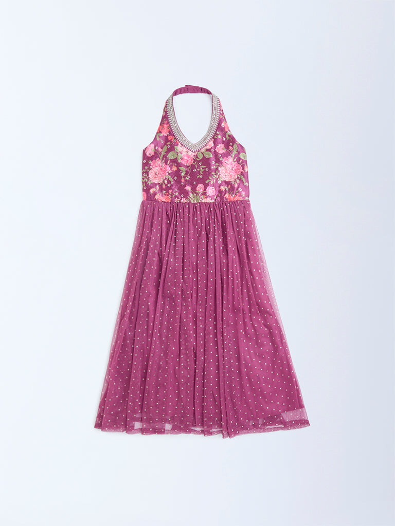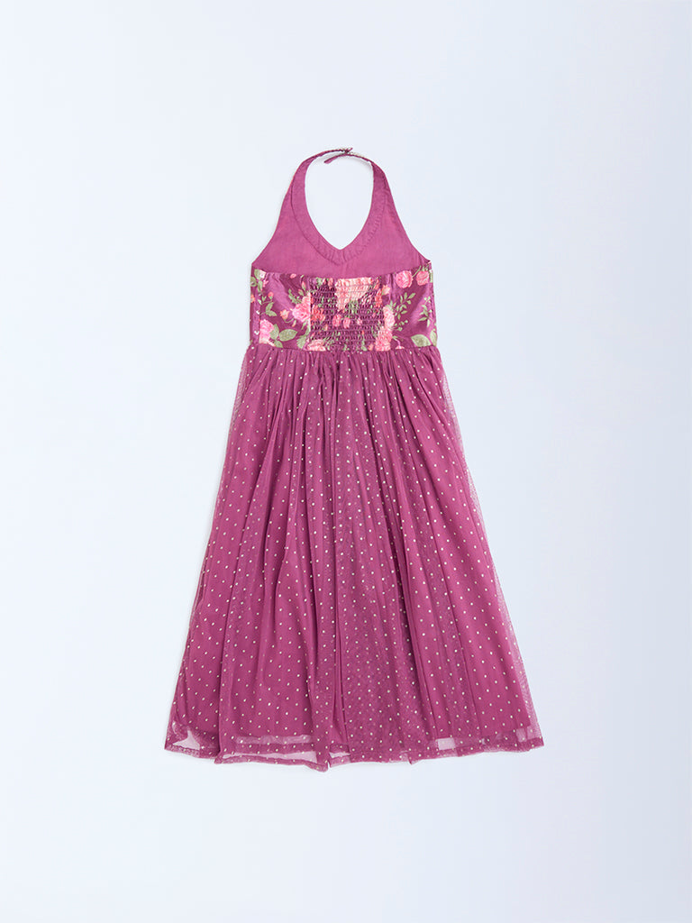 Utsa Kids Dusty Rose Floral Pattern Halter-Neck Dress – (2-8yrs)