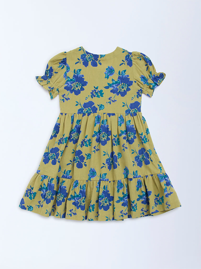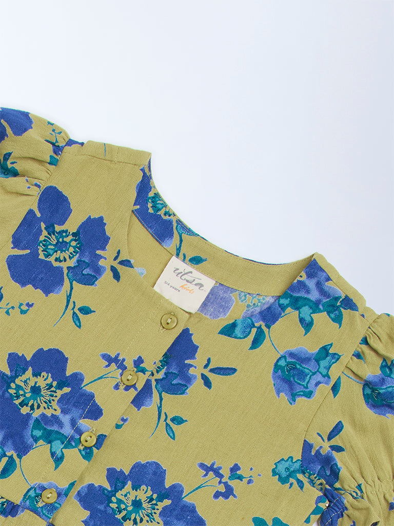 Utsa Kids Green Floral Printed Cotton A-Line Dress – (2-8yrs)