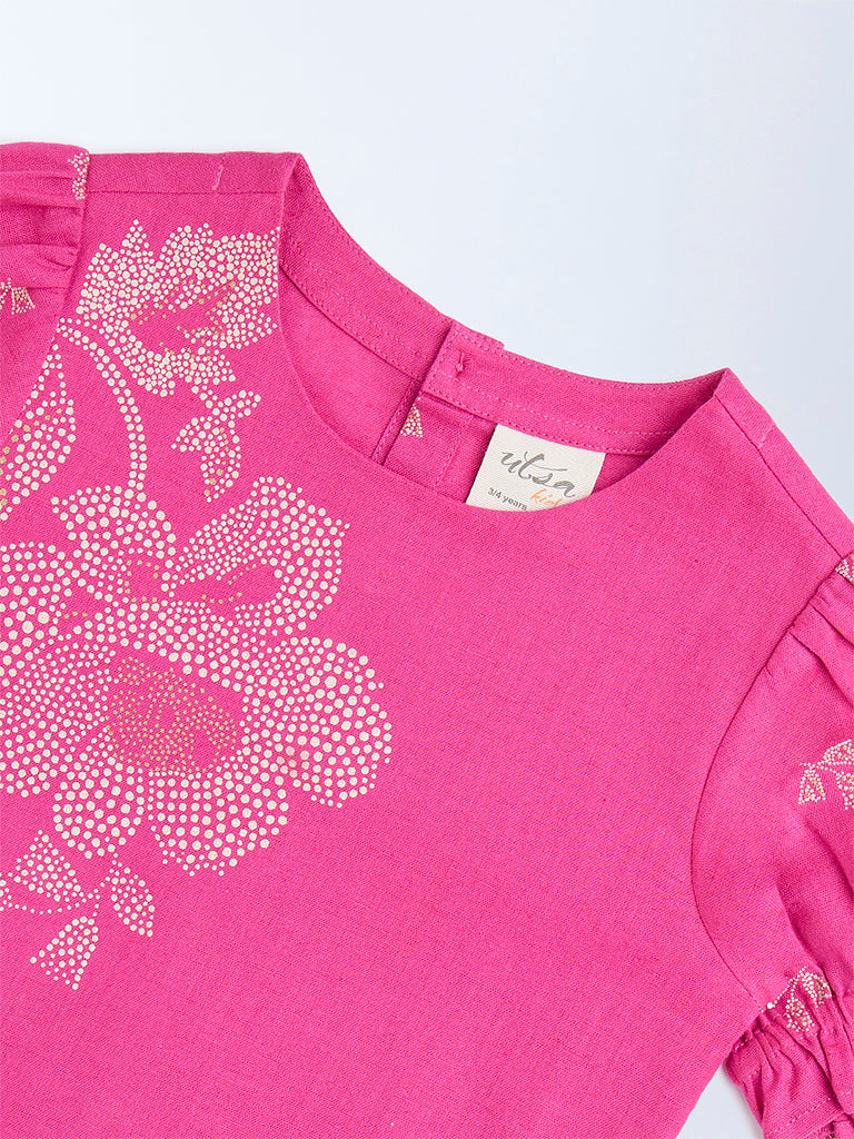 Utsa Kids Magenta Floral Design Cotton-Blend Top – (2-8yrs)