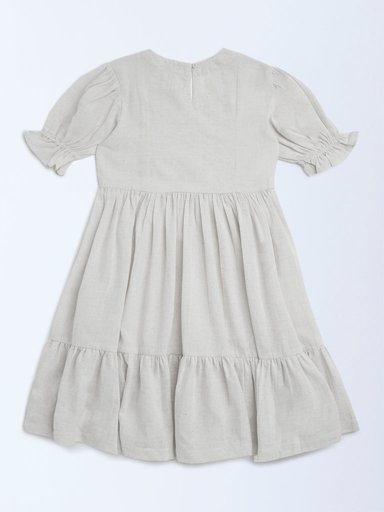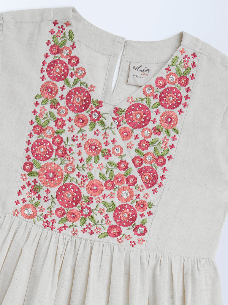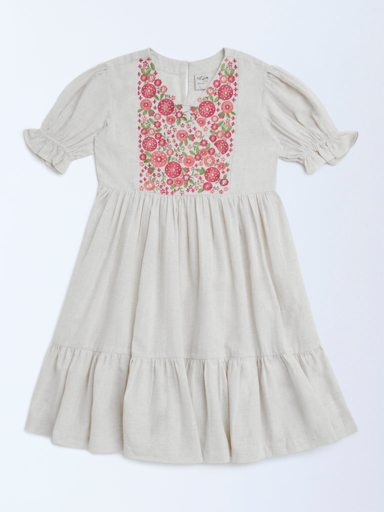 Utsa Kids Off-White Embroidered Cotton-Blend Tiered Dress – (8-14yrs)