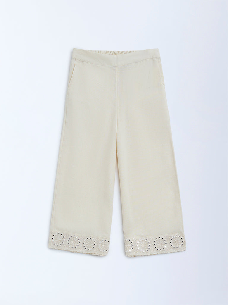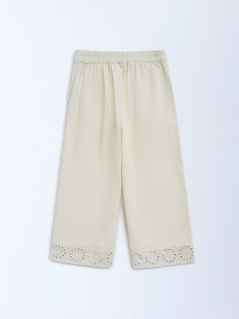 Utsa Kids Off-White Mirror Detailed Cotton Ethnic Pants – (2-8yrs)