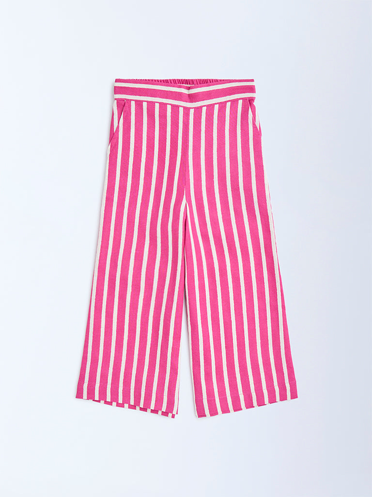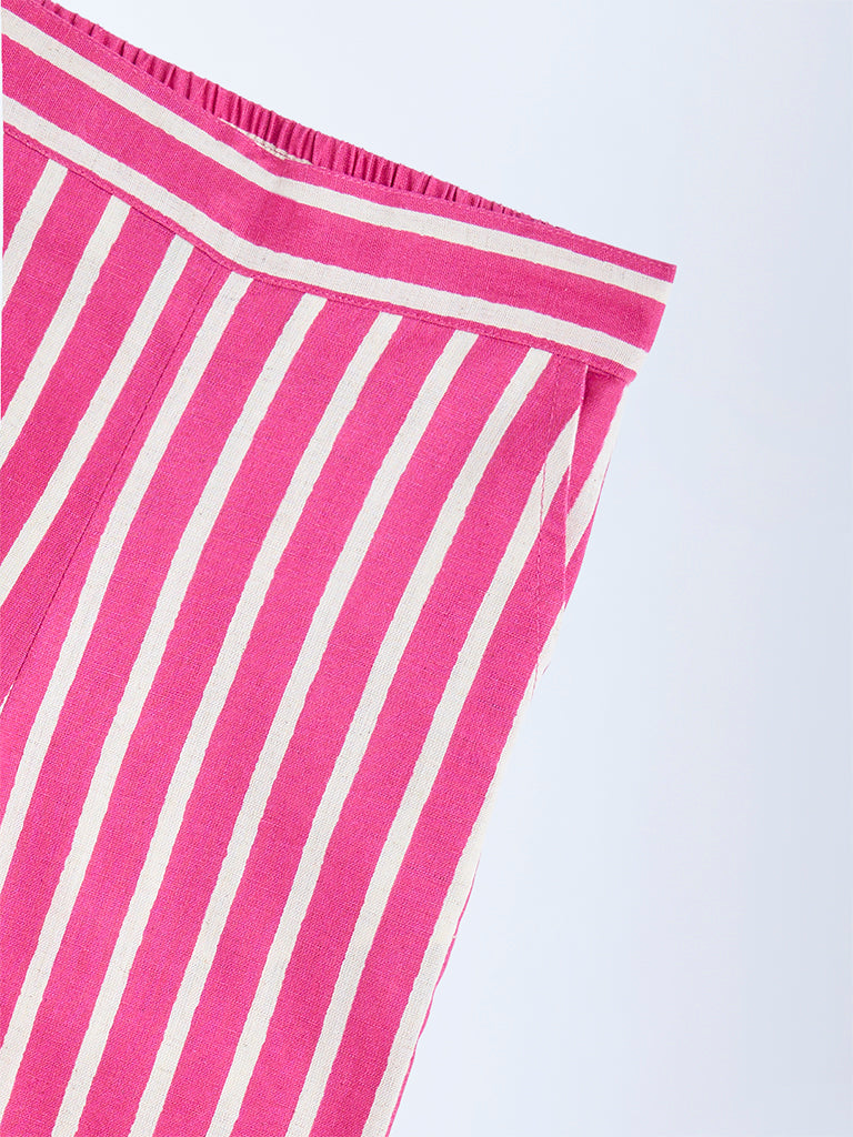 Utsa Kids Pink Striped Cotton-Blend Pants – (2-8yrs)