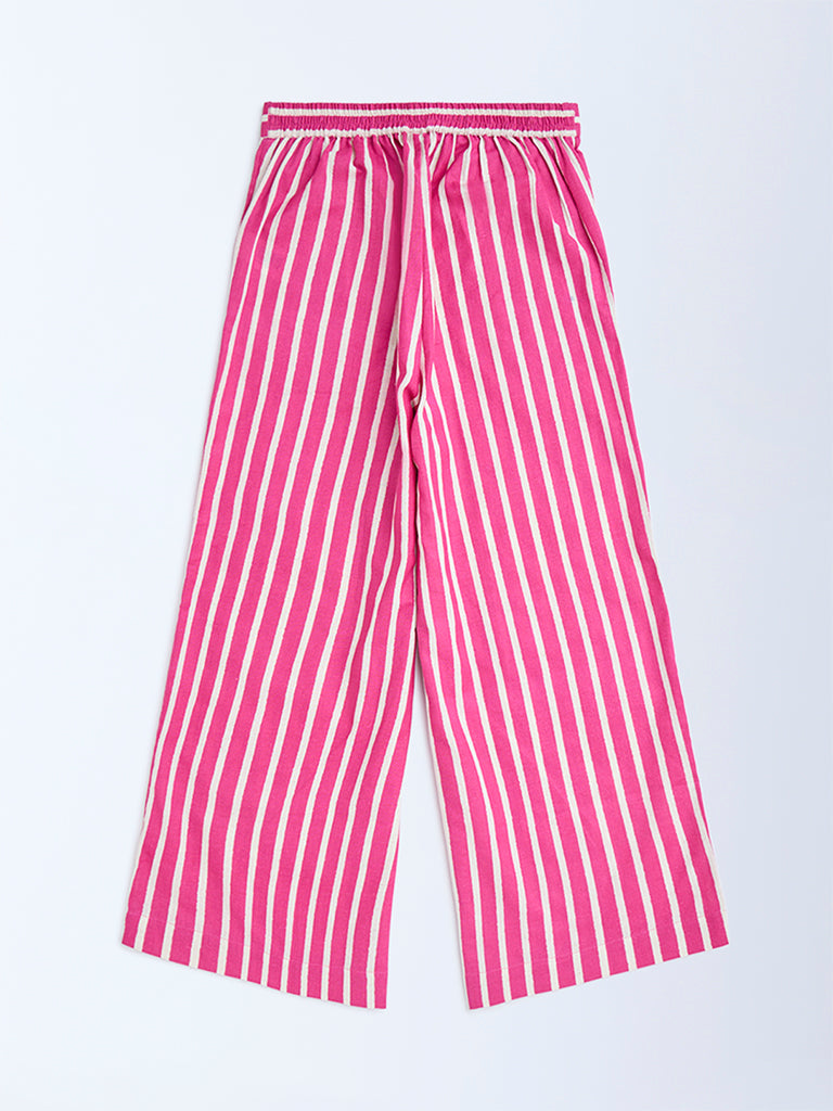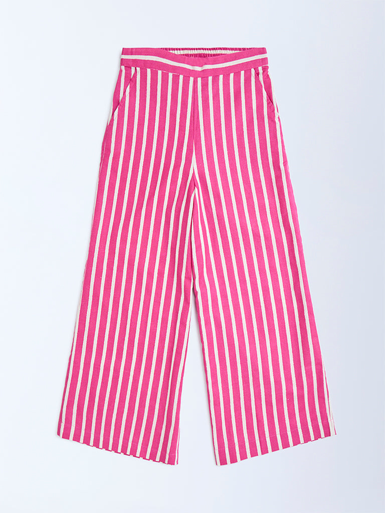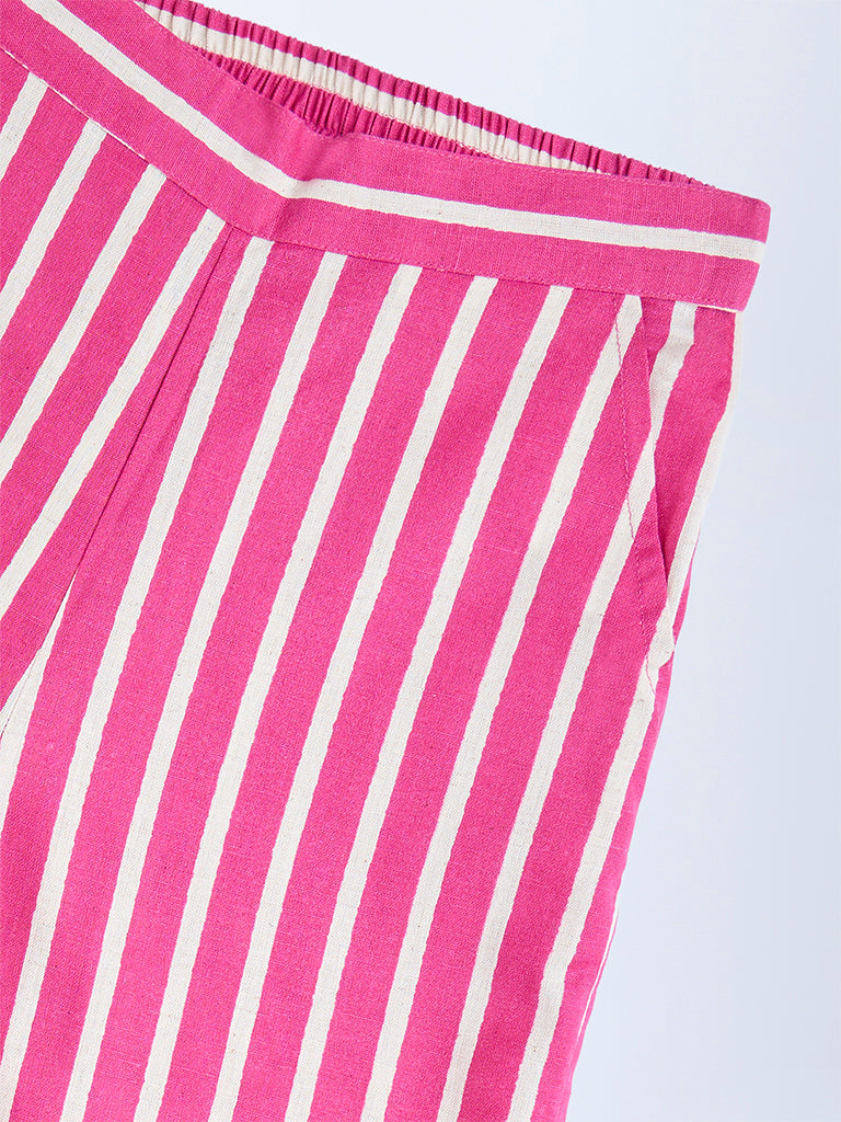 Utsa Kids Pink Striped Cotton-Blend Pants – (8-14yrs)