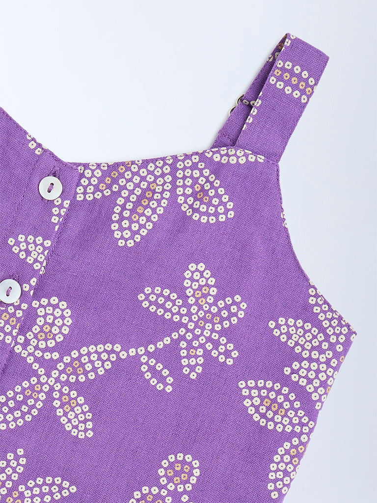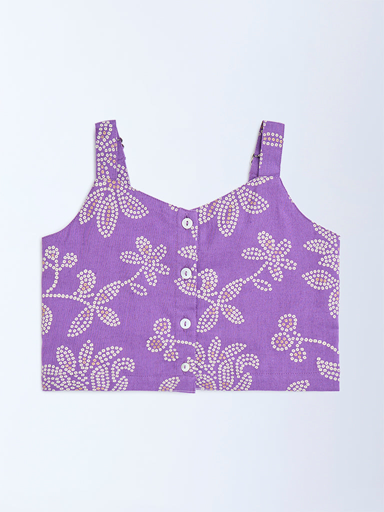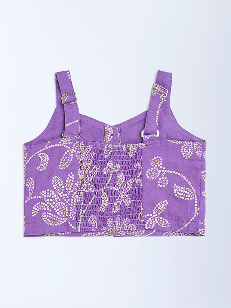 Utsa Kids Purple Bandhani Floral Cotton-Blend Top – (2-8yrs)