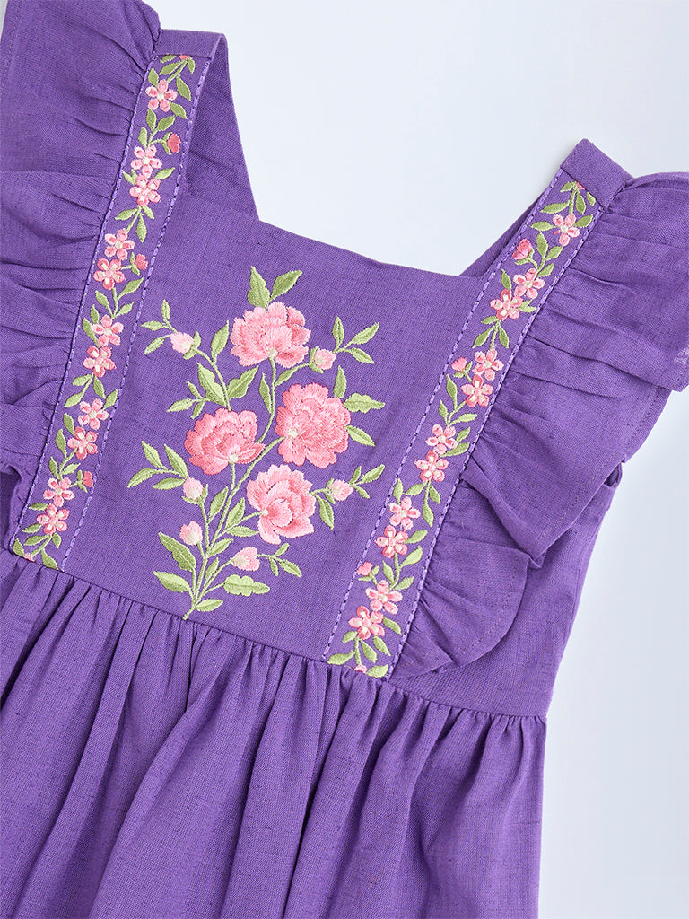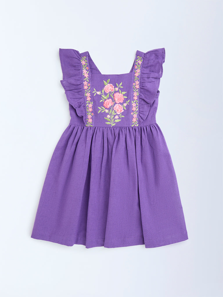Utsa Kids Purple Floral Embroidered Cotton-Blend A-Line Dress – (2-8yrs)
