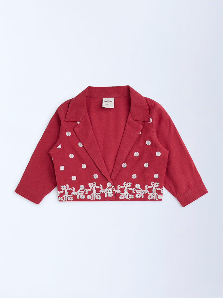 Utsa Kids Red Jamdani Cotton-Blend Jacket – (2-8yrs)