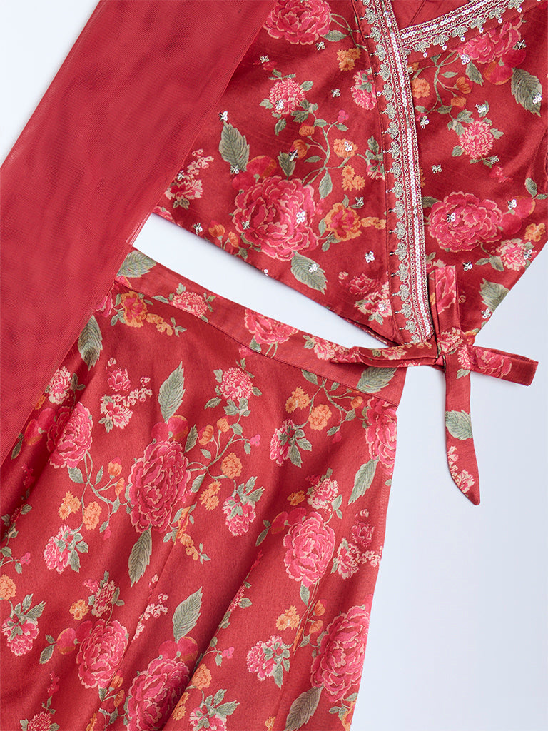 Utsa Kids Rust Floral Pattern Ethnic Set – (8-14yrs)