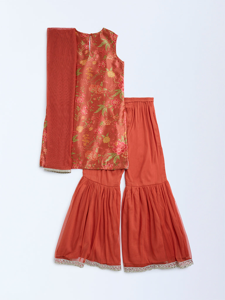 Utsa Kids Rust Floral Pattern Ethnic Set – (8-14yrs)