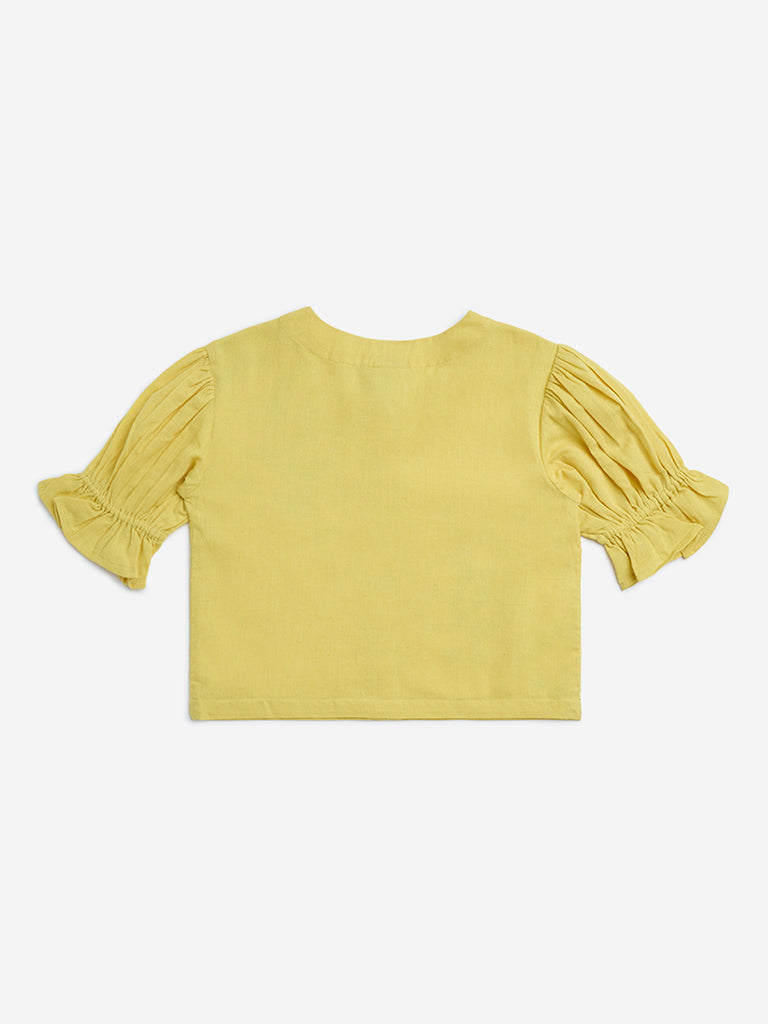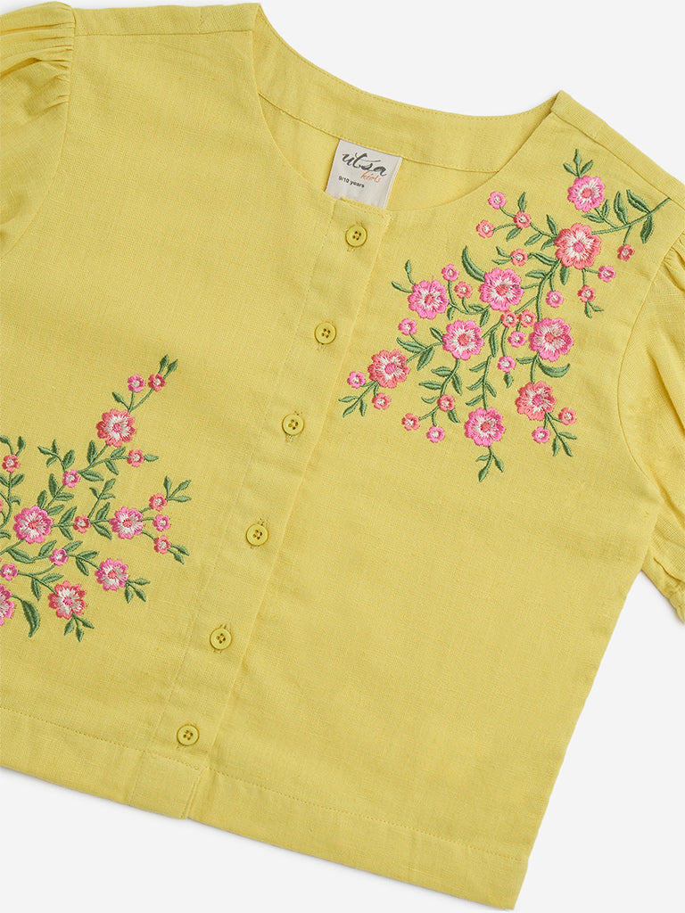 Utsa Kids Yellow Floral Embroidered Cotton-Blend Ethnic Top – (8-14yrs)