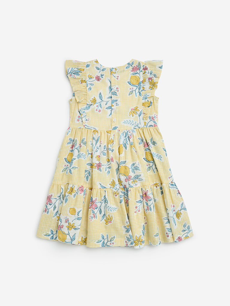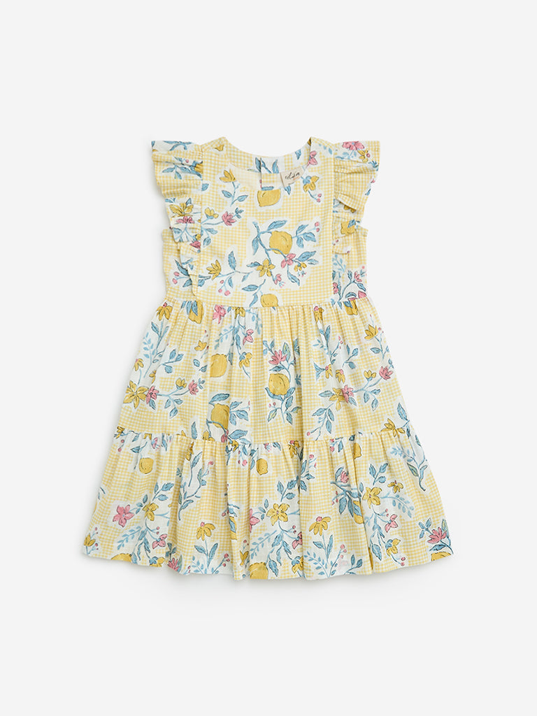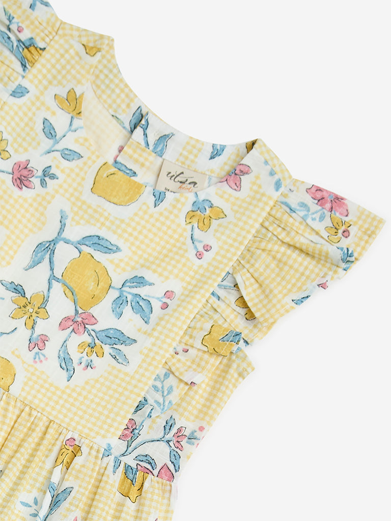 Utsa Kids Yellow Fruits Printed Cotton A-Line Dress – (2-8yrs)