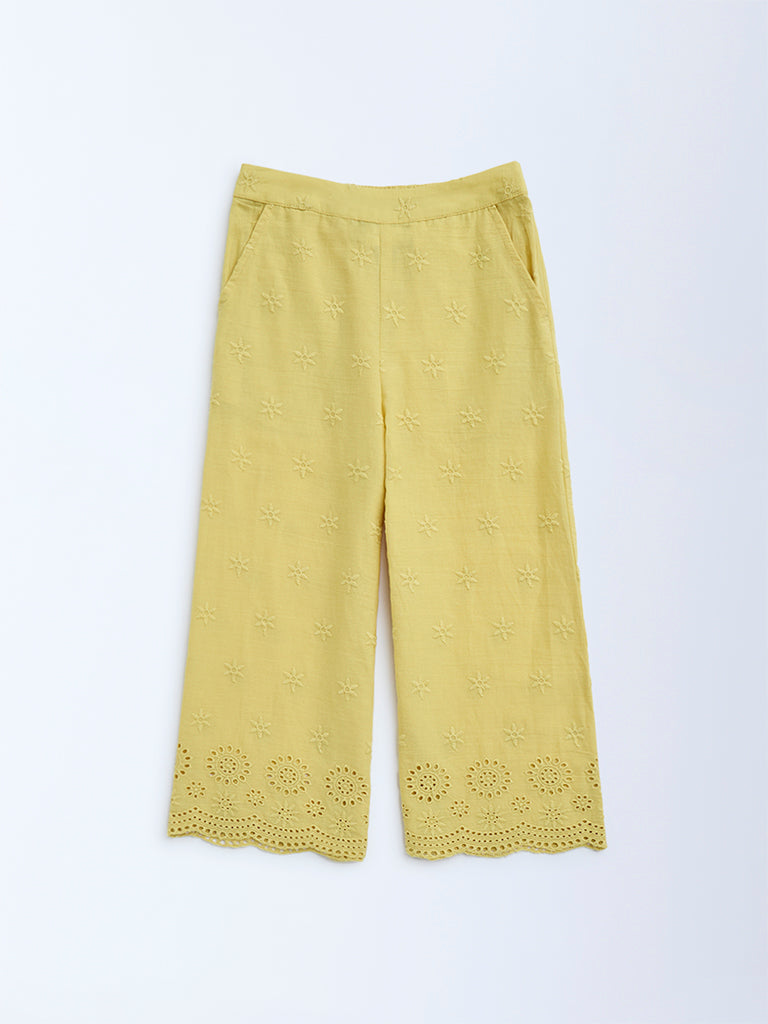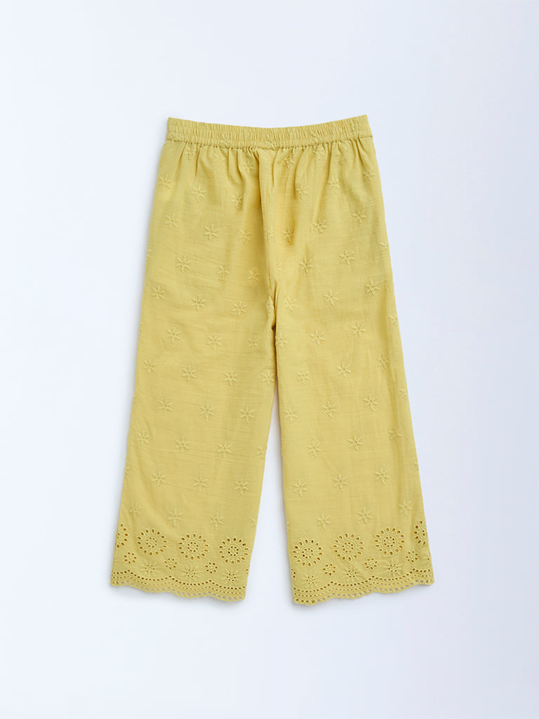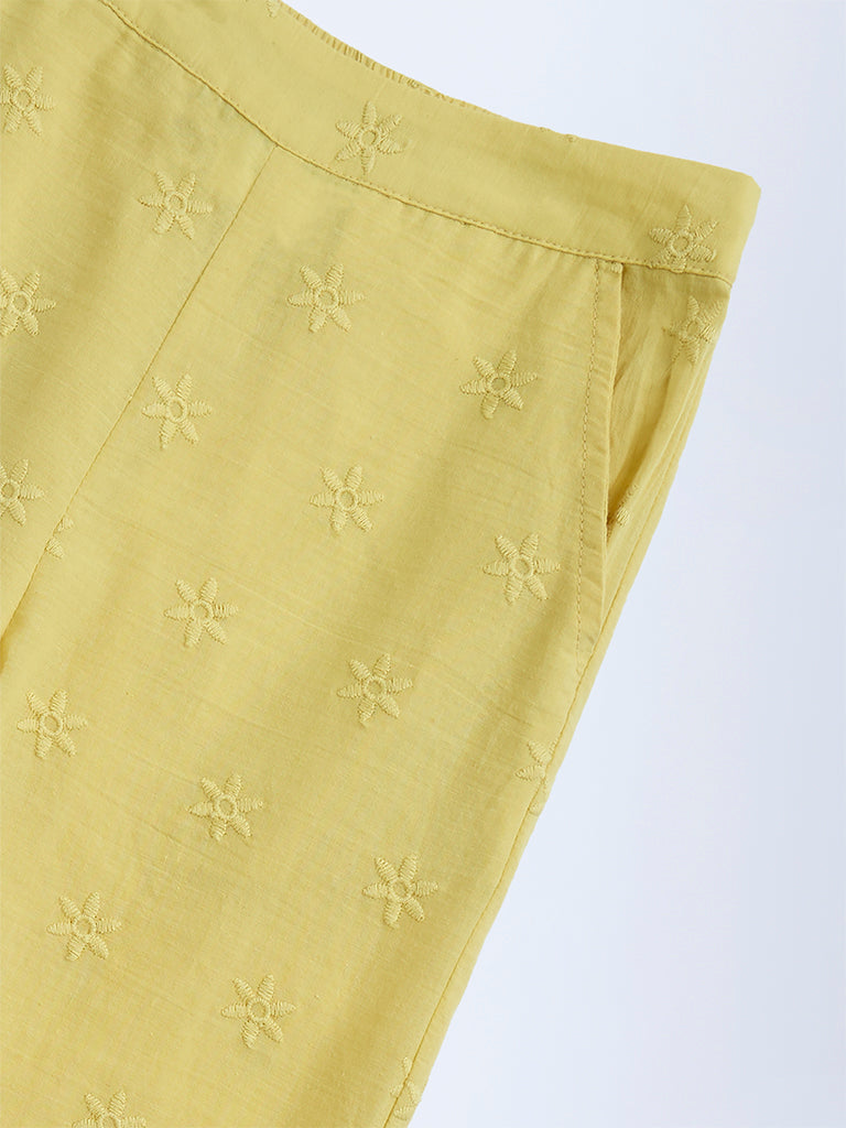 Utsa Kids Yellow Schiffli Detailed Cotton Ethnic Pants – (2-8yrs)