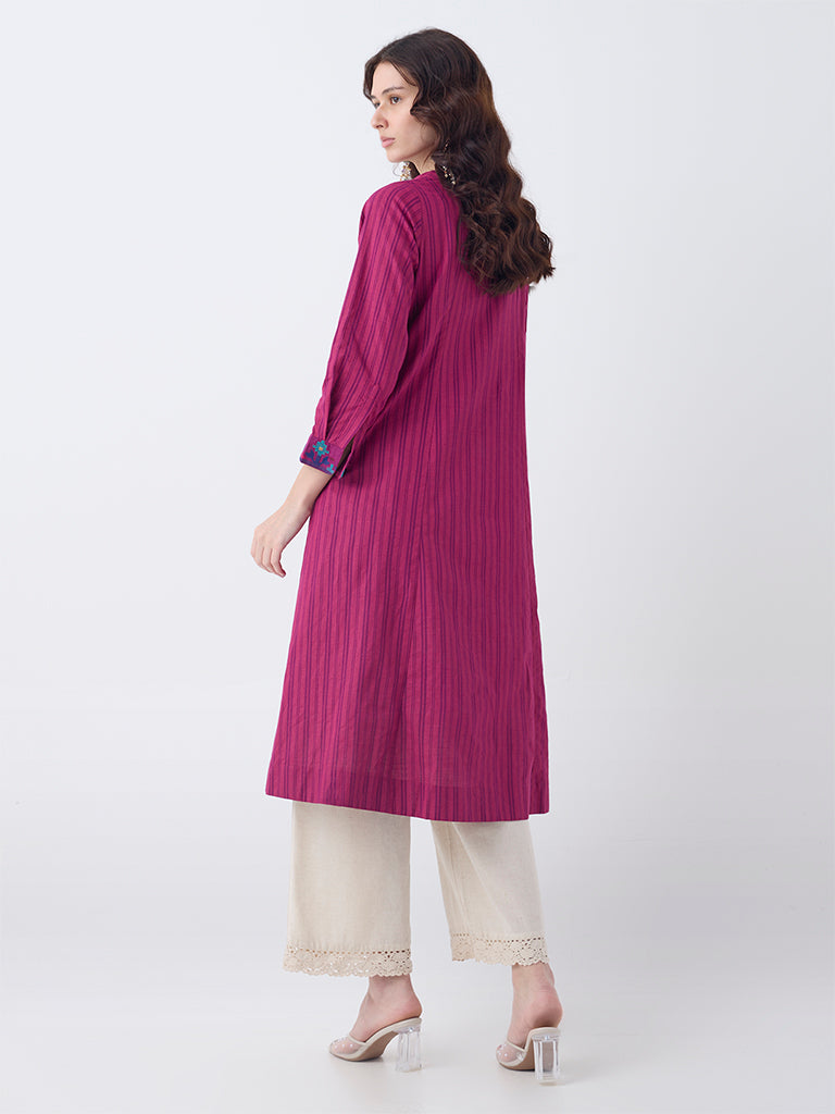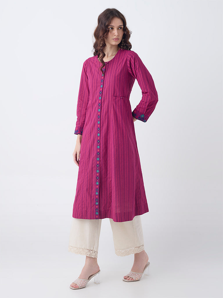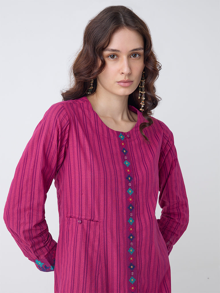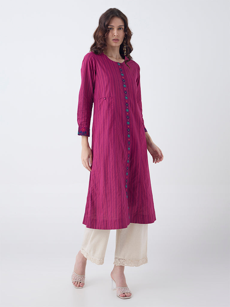 Utsa Magenta Striped Cotton A-Line Kurta