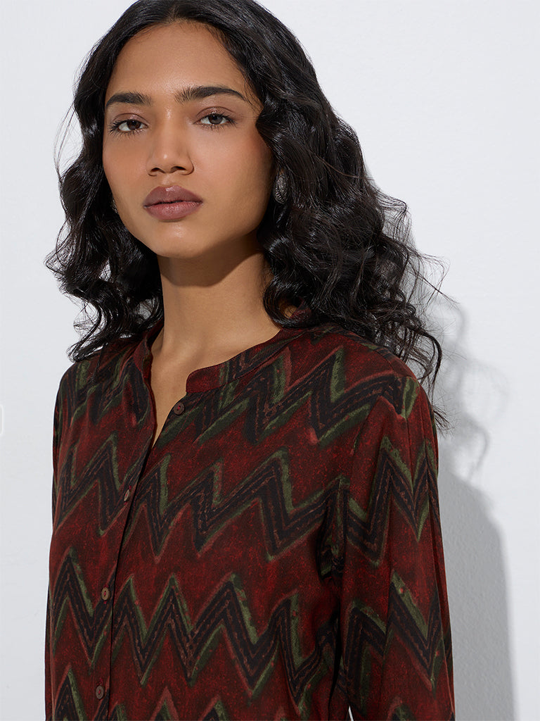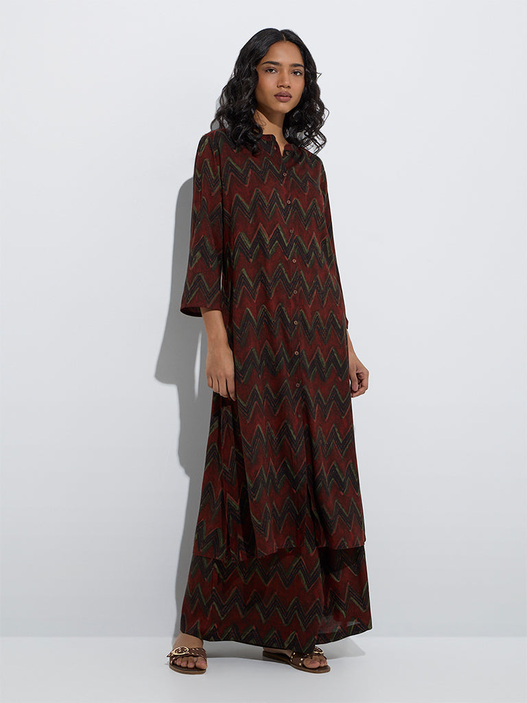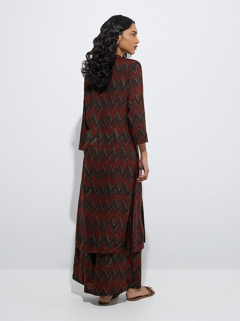 Utsa Maroon Chevron Pattern A-Line Kurta