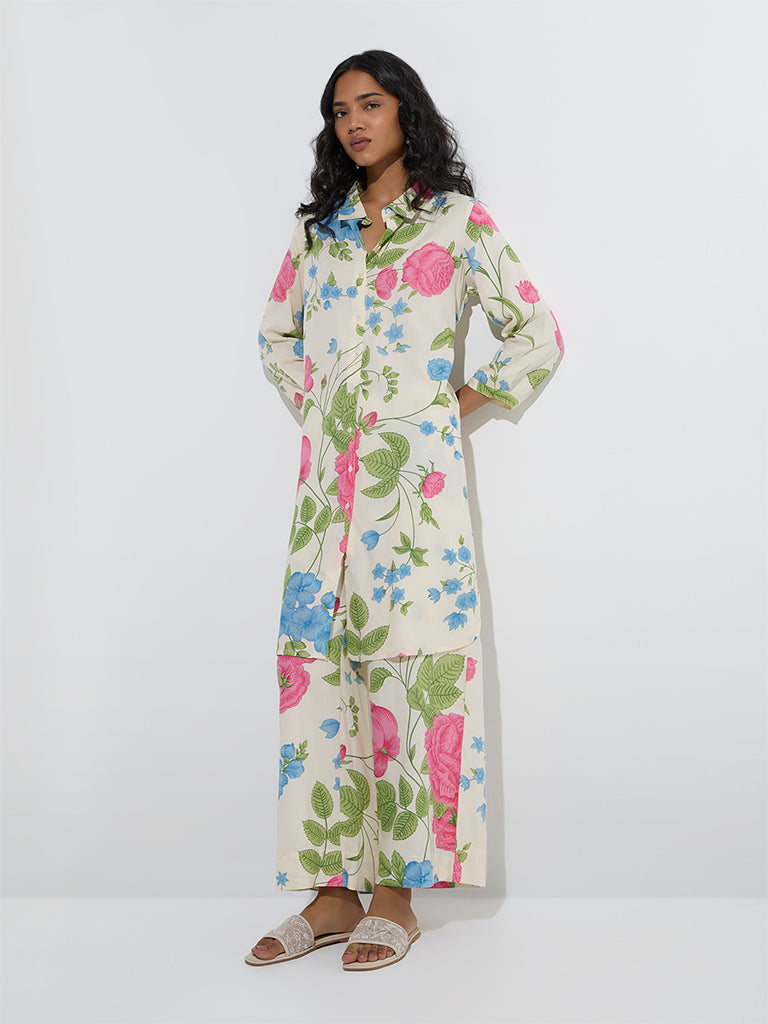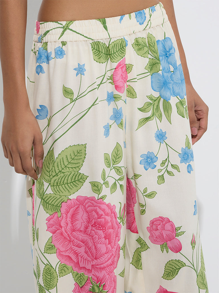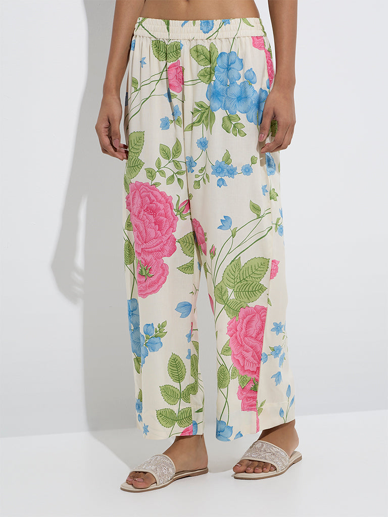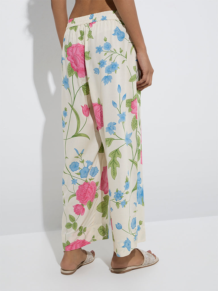 These ethnic palazzos from Utsa are elevated with vibrant multicolour floral prints for a contemporary finish. Crafted from quality fabric. they feature an elastic waistband that ensures a comfortable fit.
