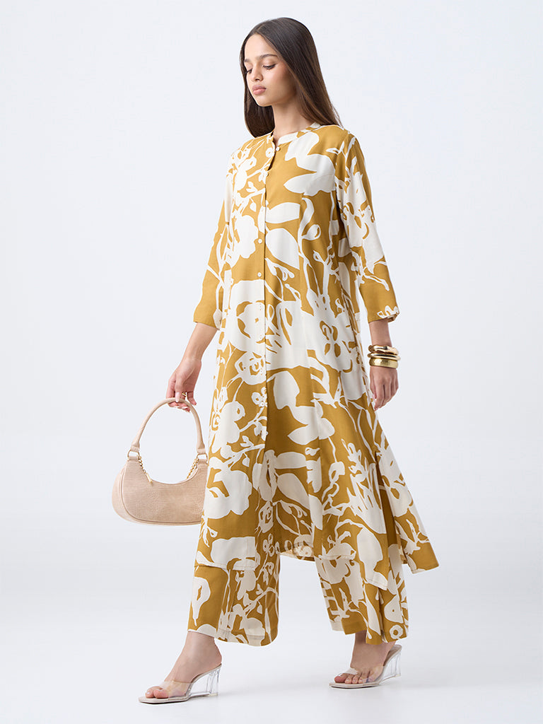 Utsa Mustard Botanical Design Palazzos
