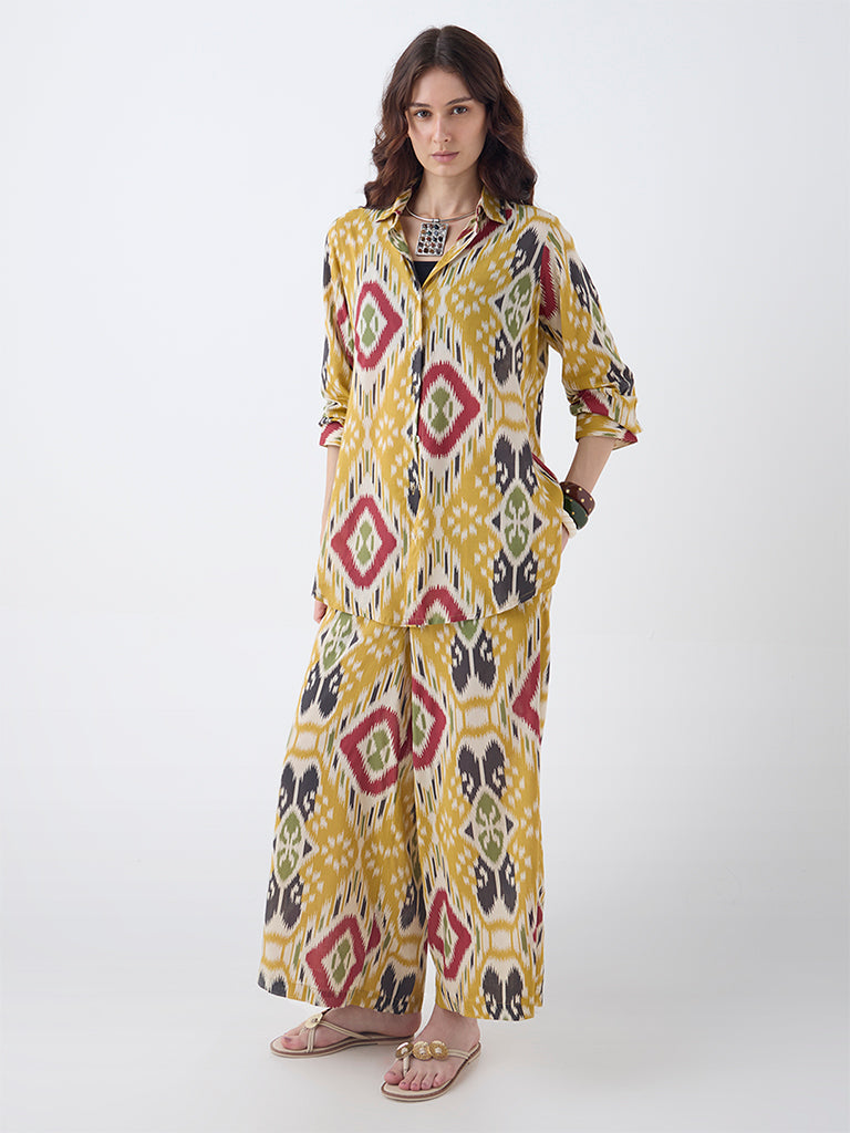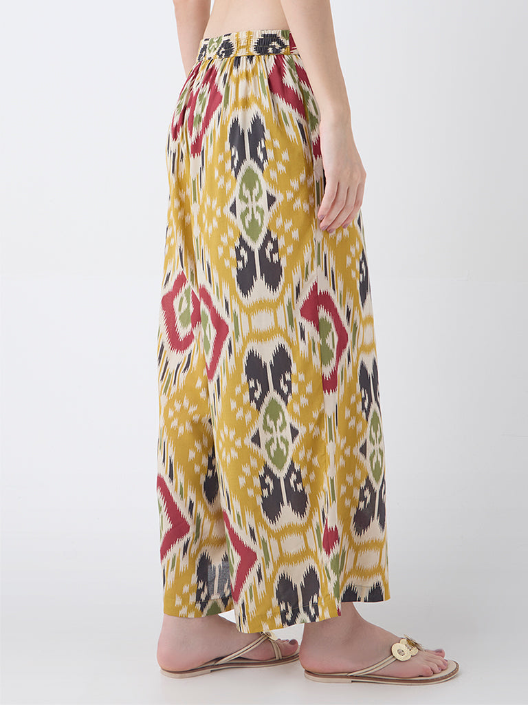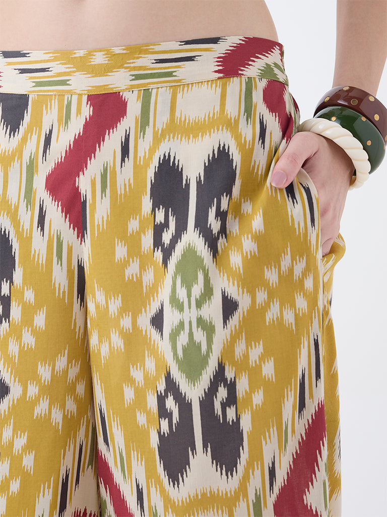 Utsa Mustard Ikat Pattern Palazzos
