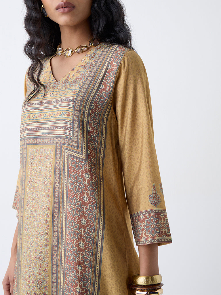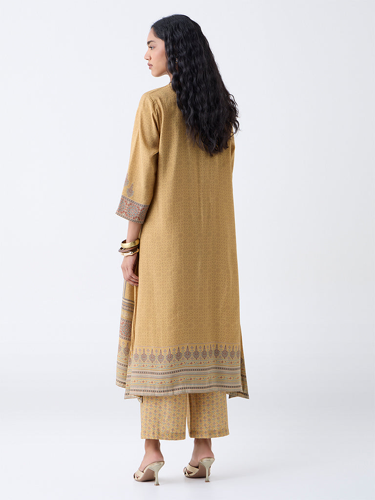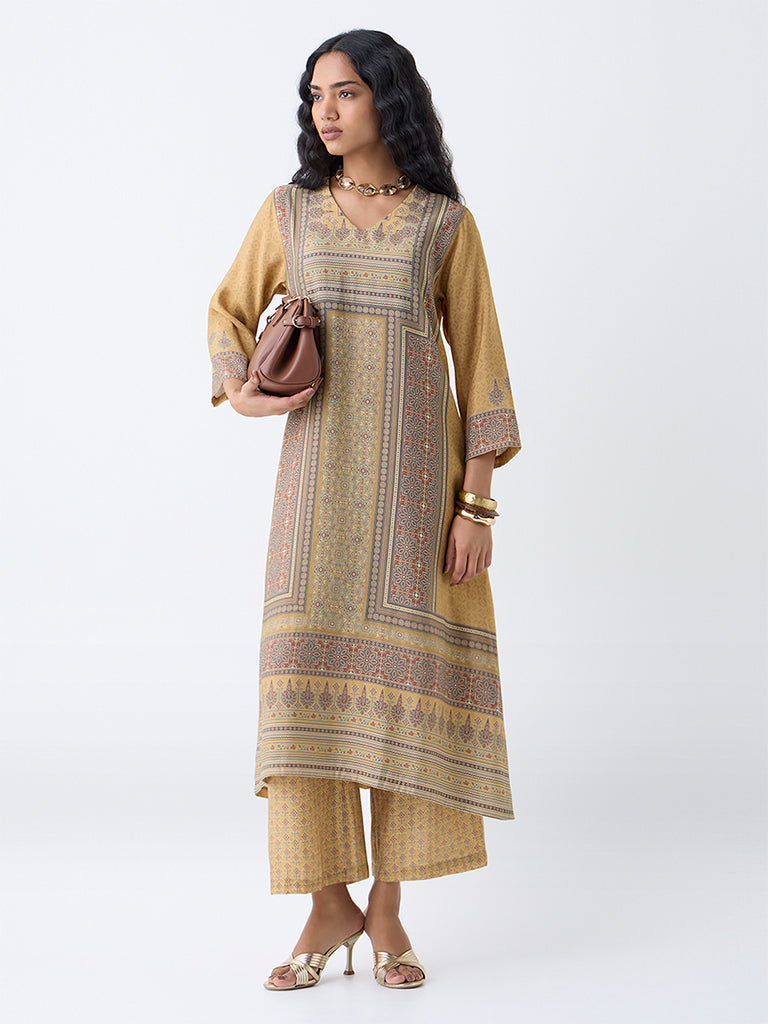 Utsa Mustard Printed A-Line Kurta