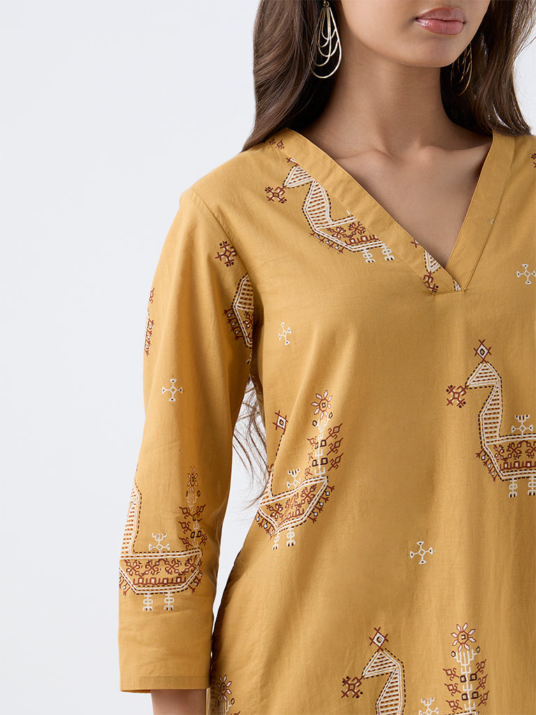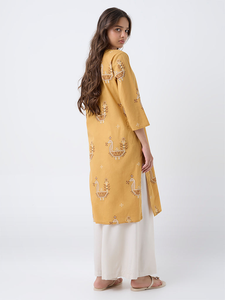 Be the first to review “Utsa Mustard Printed Cotton Straight Kurta”