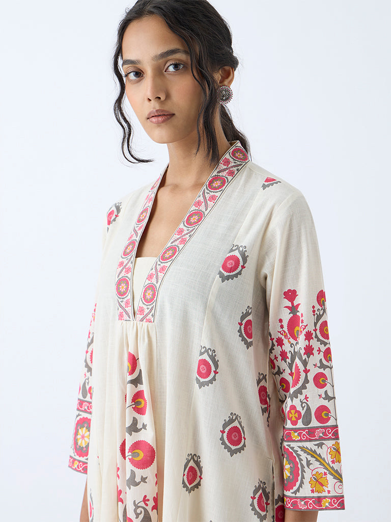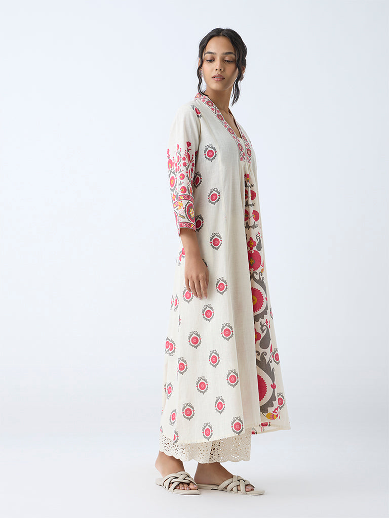 Utsa Off-White Suzani Pattern A-Line Kurta