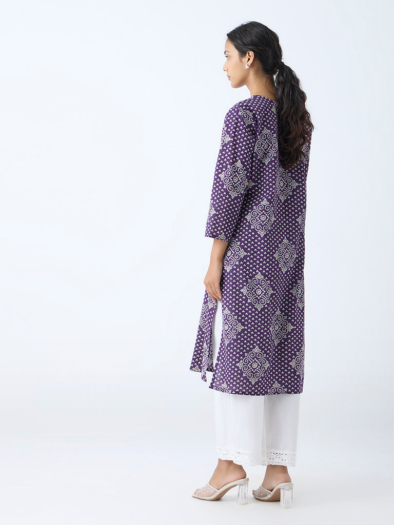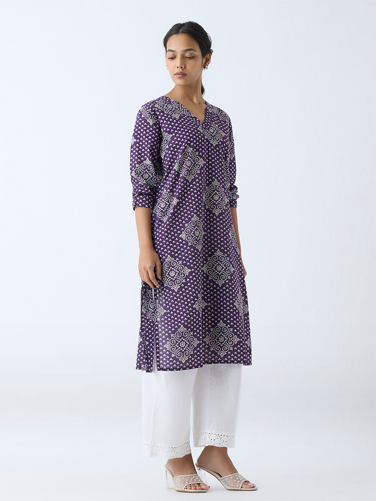 Utsa Purple Bandhani Printed Cotton Straight Kurta