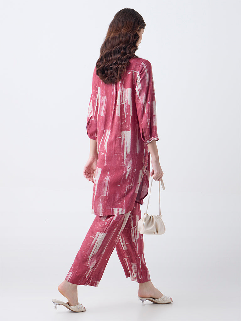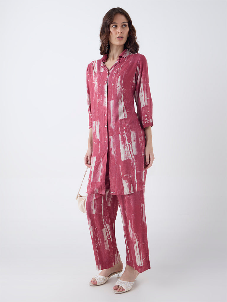Utsa Red Abstract Printed Straight Kurta