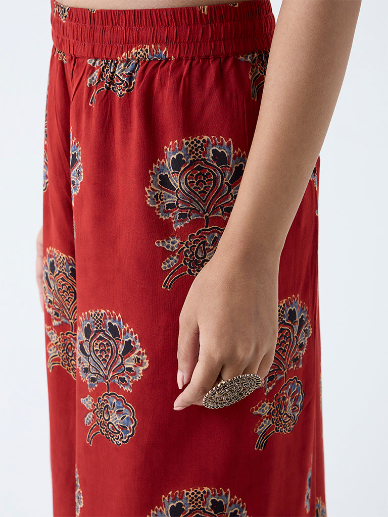 Utsa Red Floral Pattern Palazzos