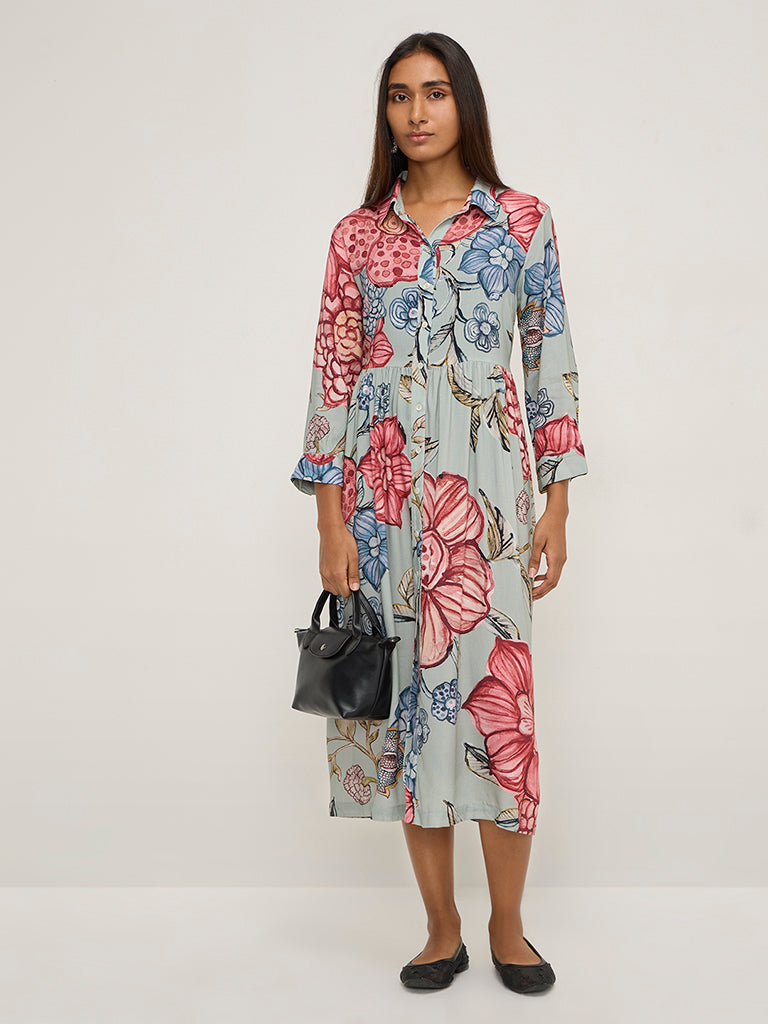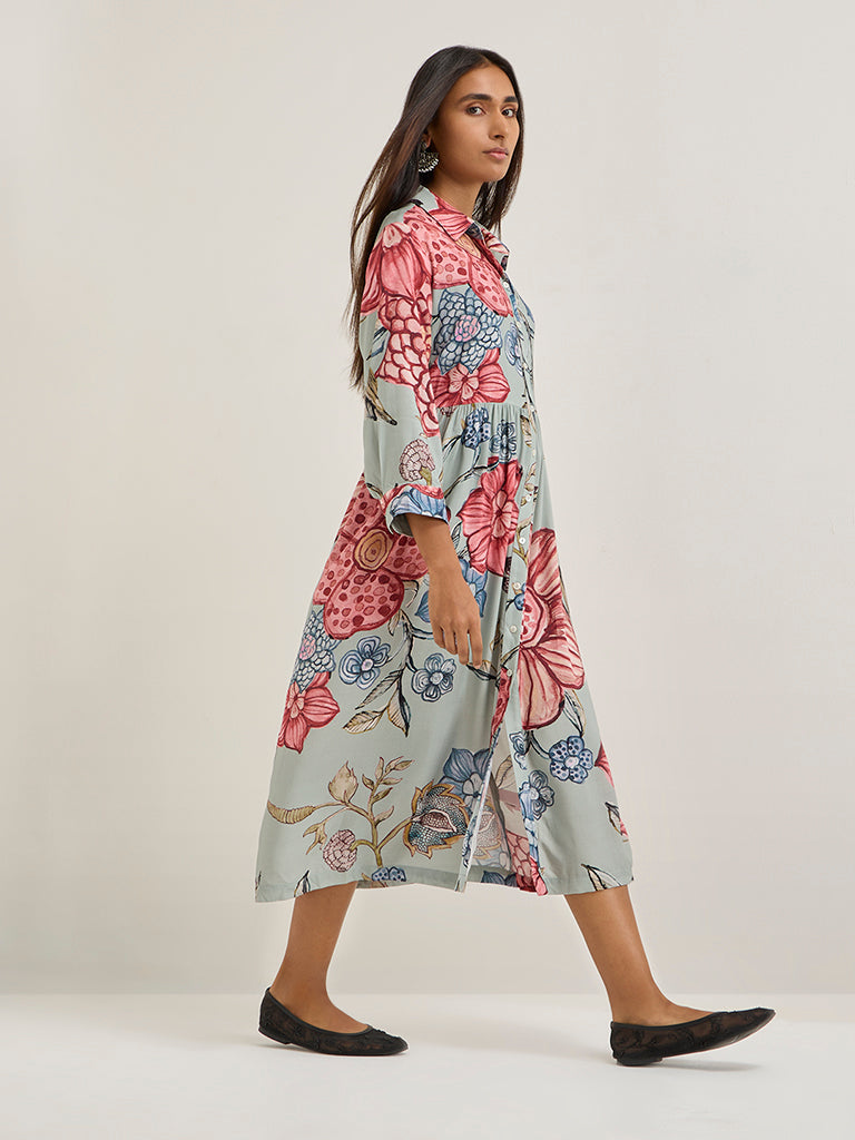 Be the first to review “Utsa Sage Floral Design Shirt Dress” Cancel reply