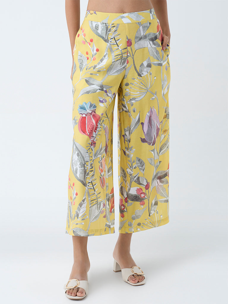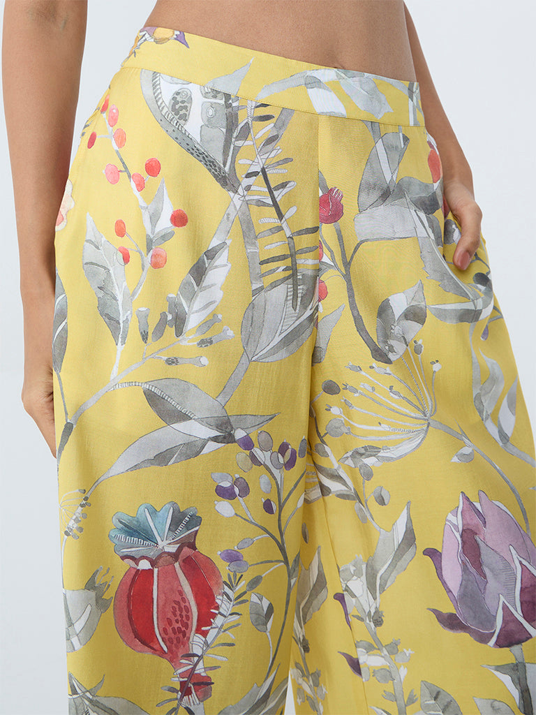 Utsa Yellow Botanical Pattern Ethnic Pants