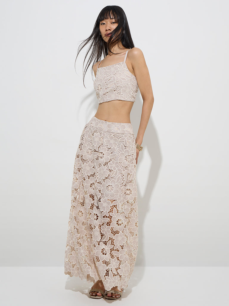 Vark Beige Floral Lace Embroidered Ethnic Top
