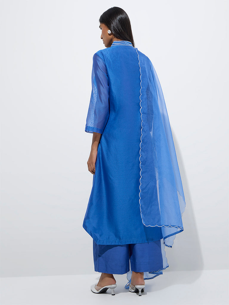 Vark Blue Cotton-Blend A-Line Kurta. Palazzos and Dupatta