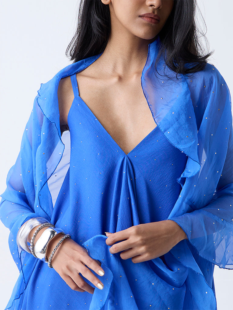 Vark Blue Diamante Embellished A-Line Ethnic Set