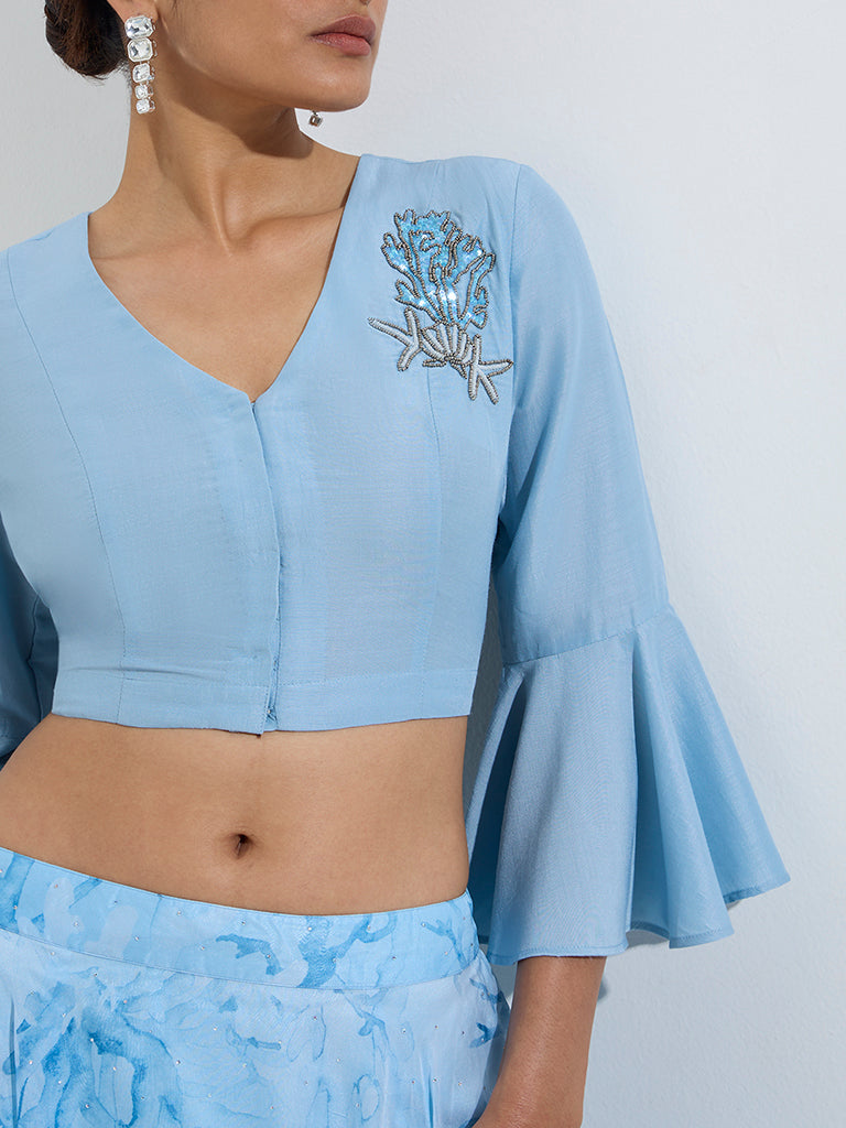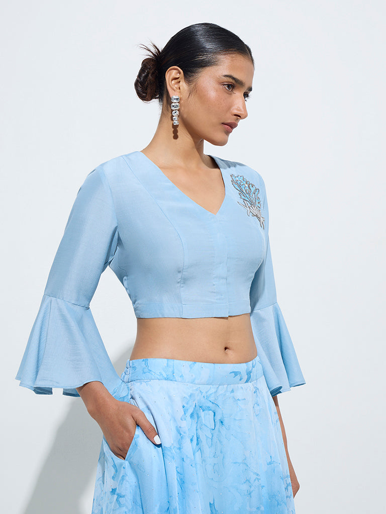 Be the first to review “Vark Blue Embellished Cropped Blouse” Cancel reply