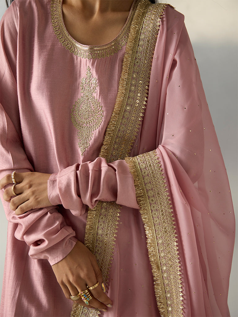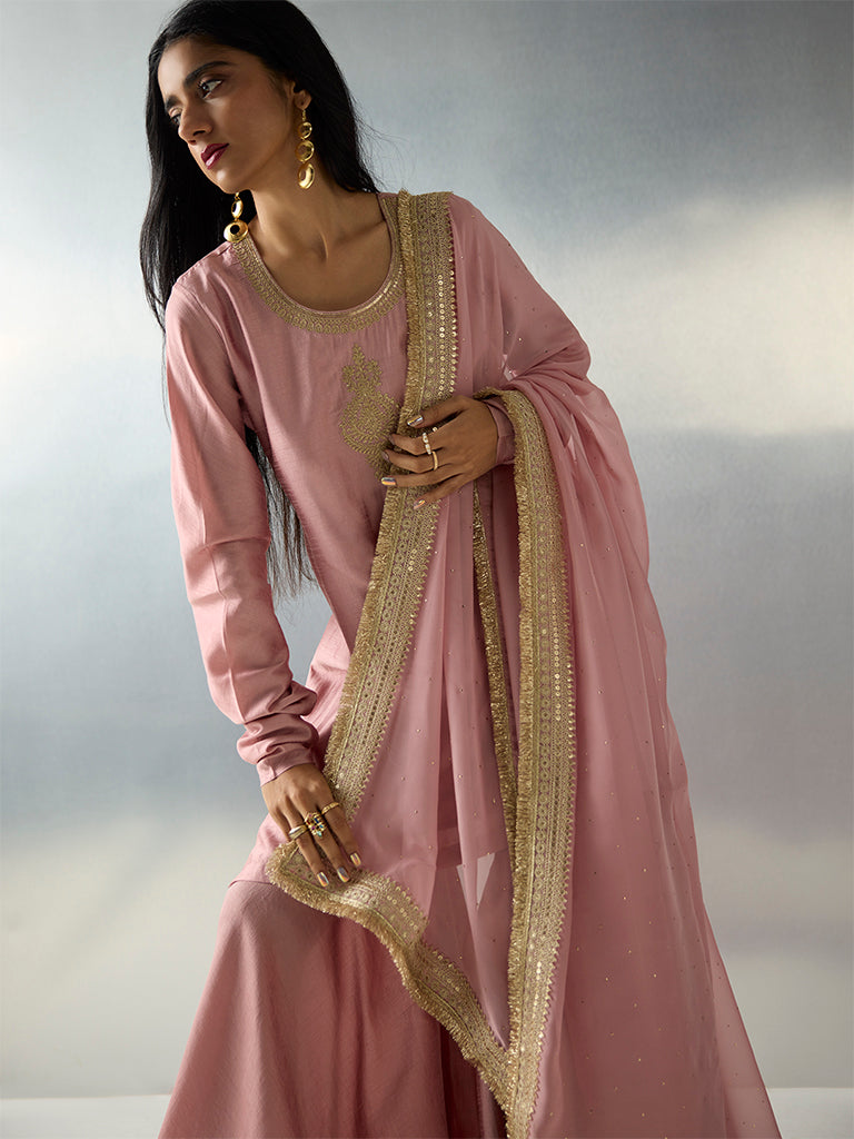 Vark Dusty Pink Zari Embroidered Straight Ethnic Set