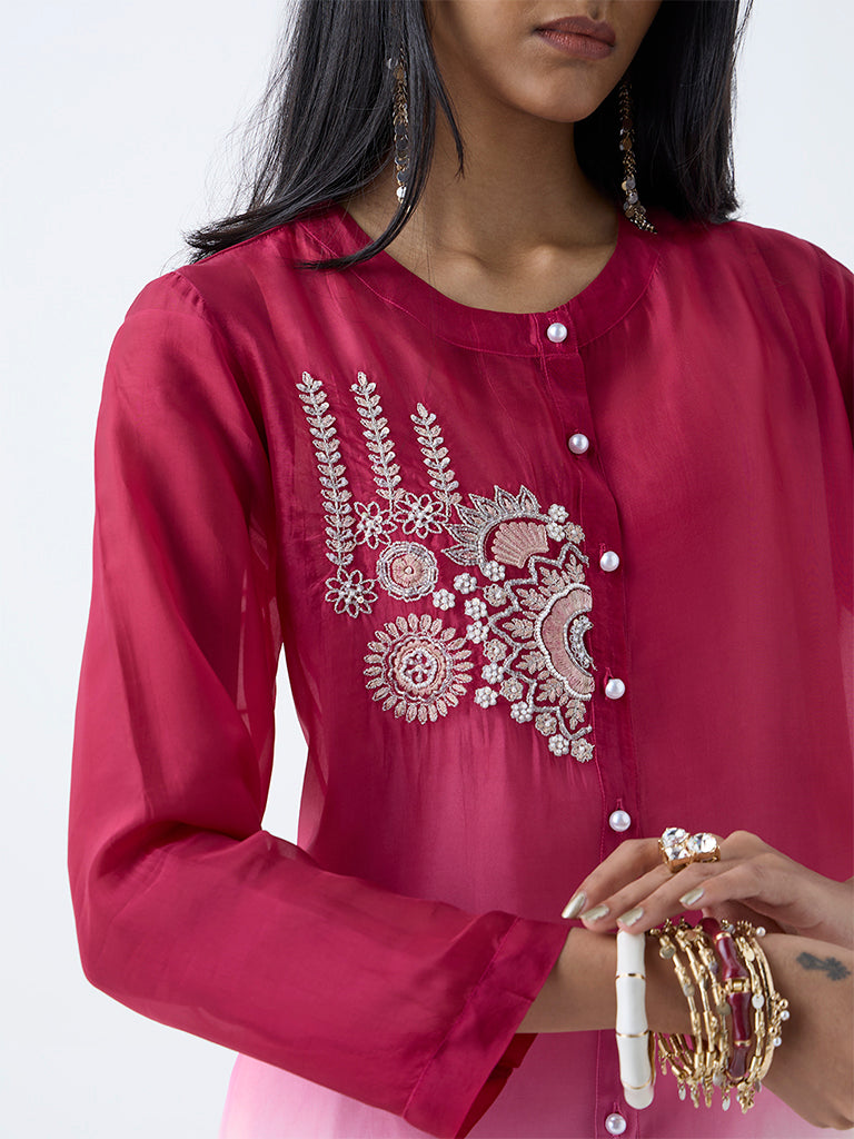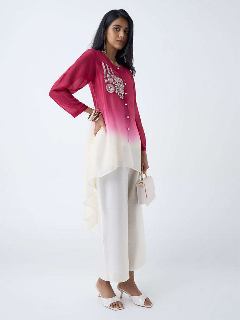 Vark Fuchsia Ombre-Finish High-Low Kurta