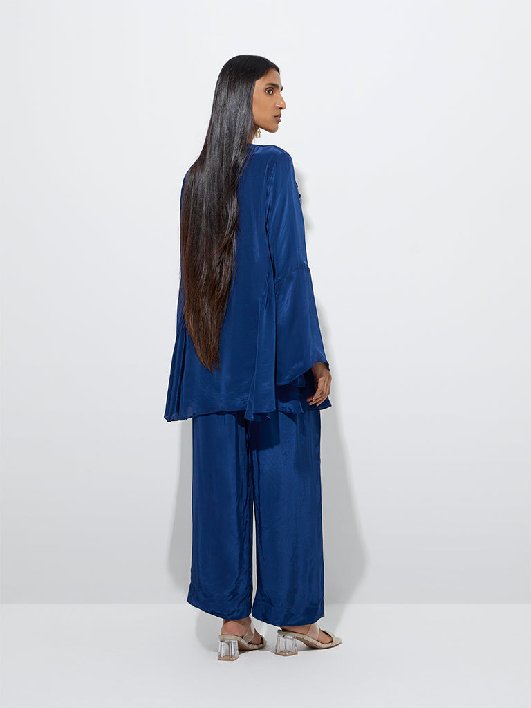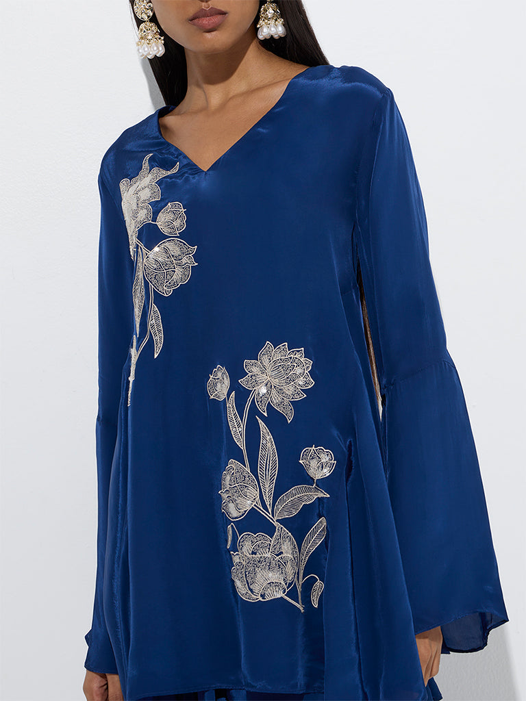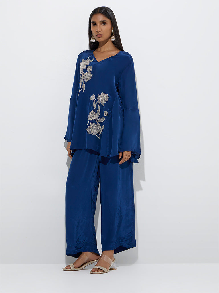Vark Indigo Floral Embellished Tunic and Ethnic Pants Set