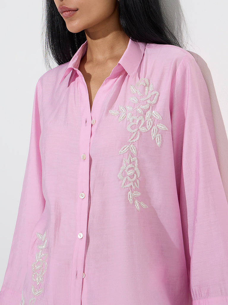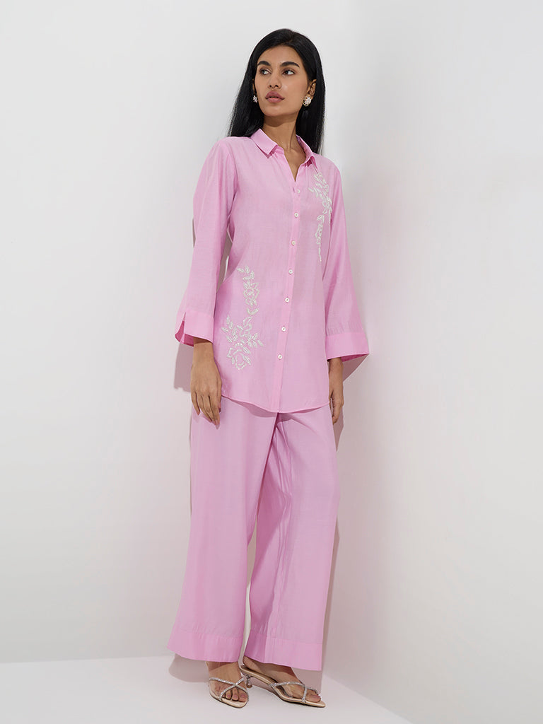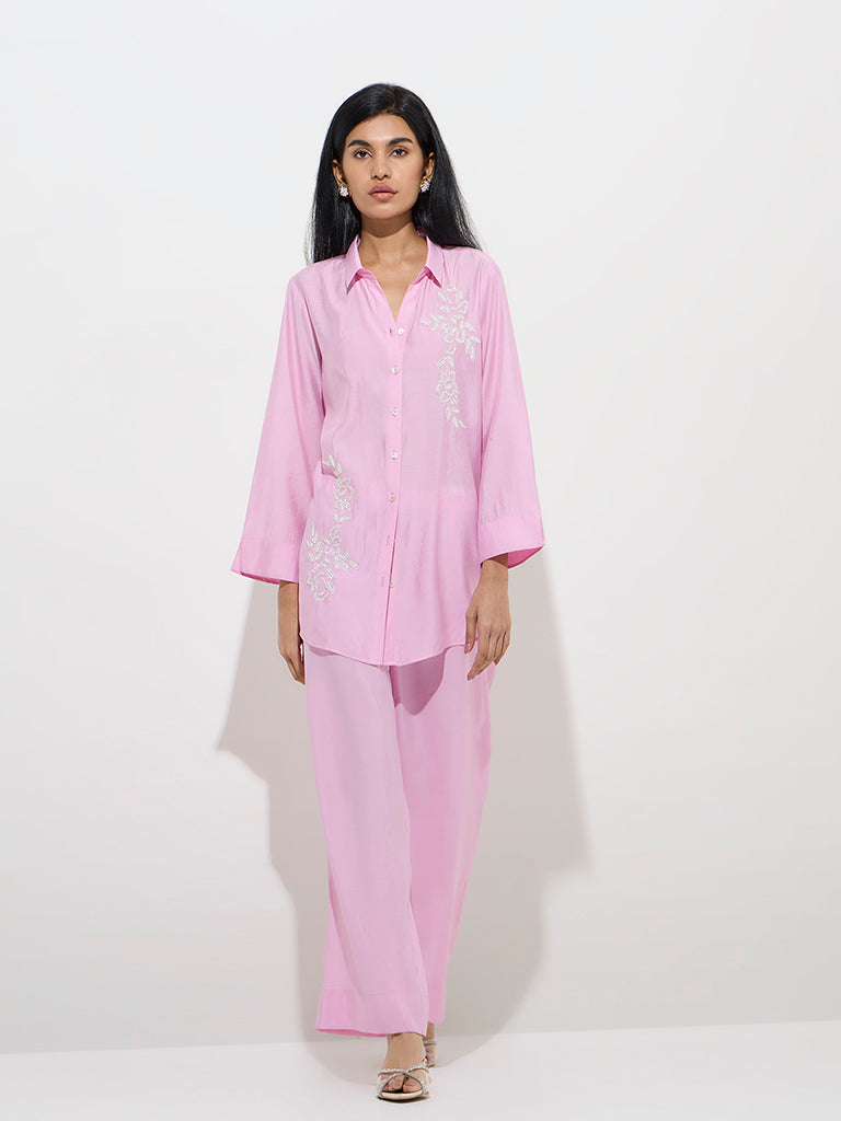 Vark Light Pink Floral Embellished Tunic with Pants Set
