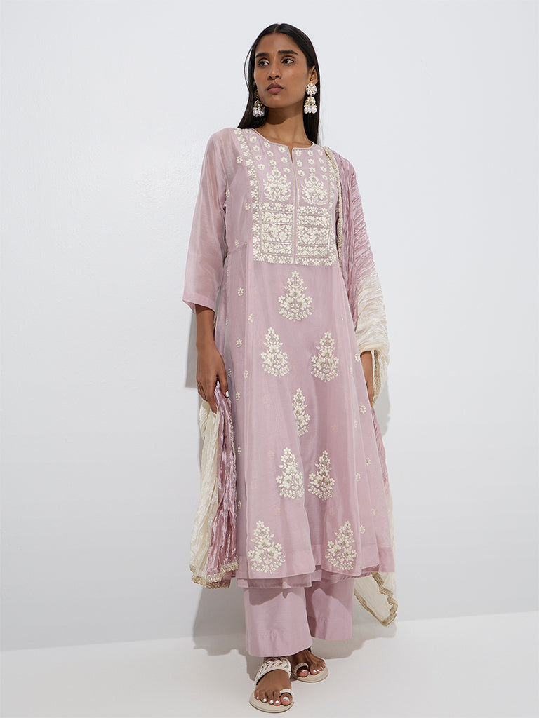 Vark Lilac Cotton-Blend A-Line Ethnic Set