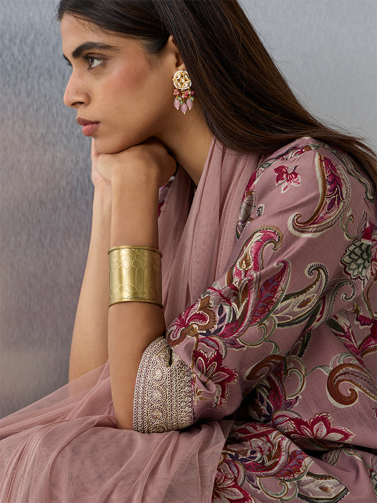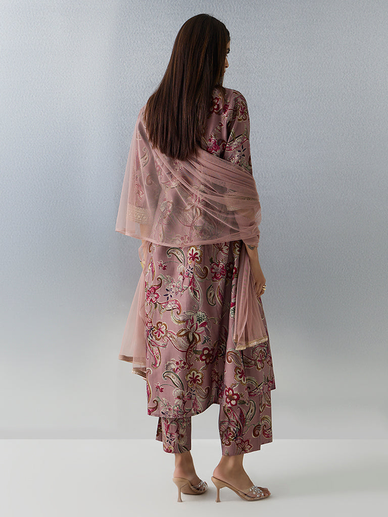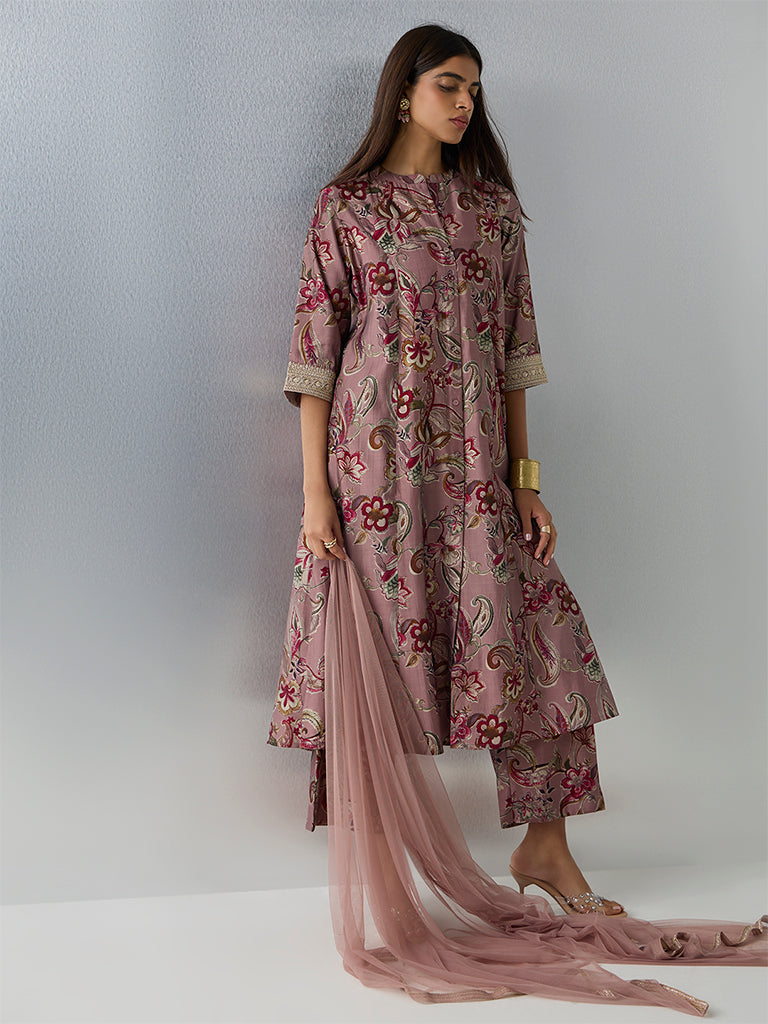 Vark Lilac Floral Pattern A-Line Ethnic Set