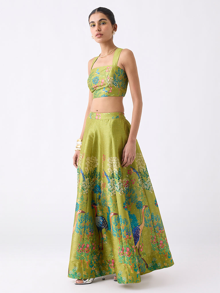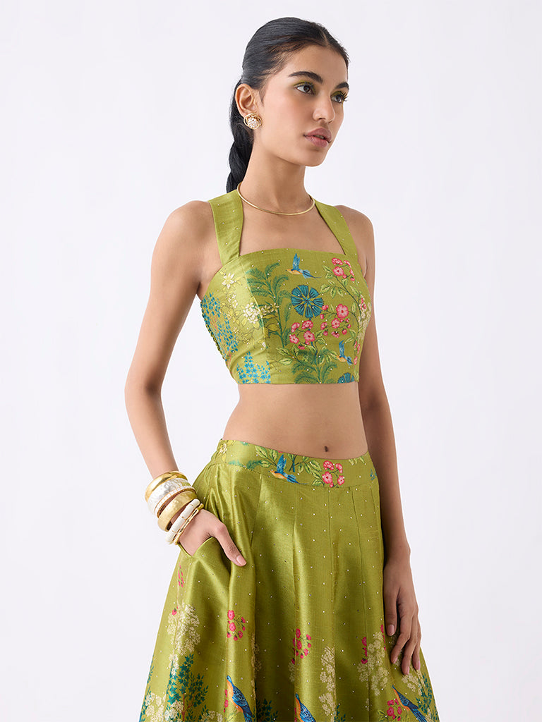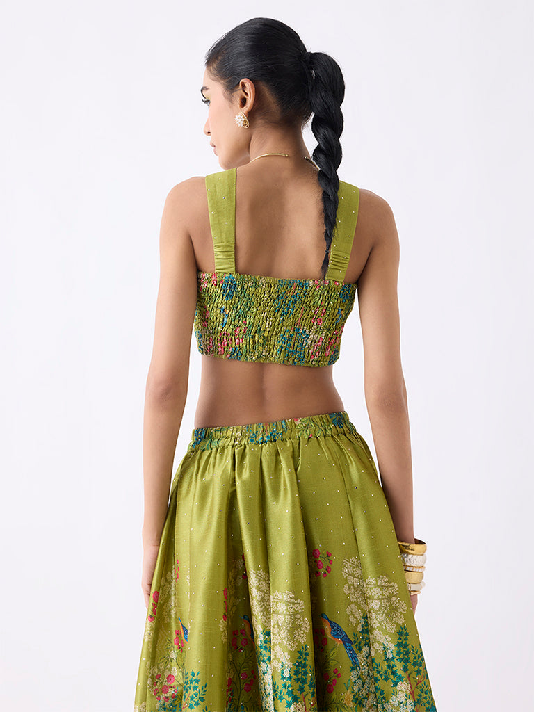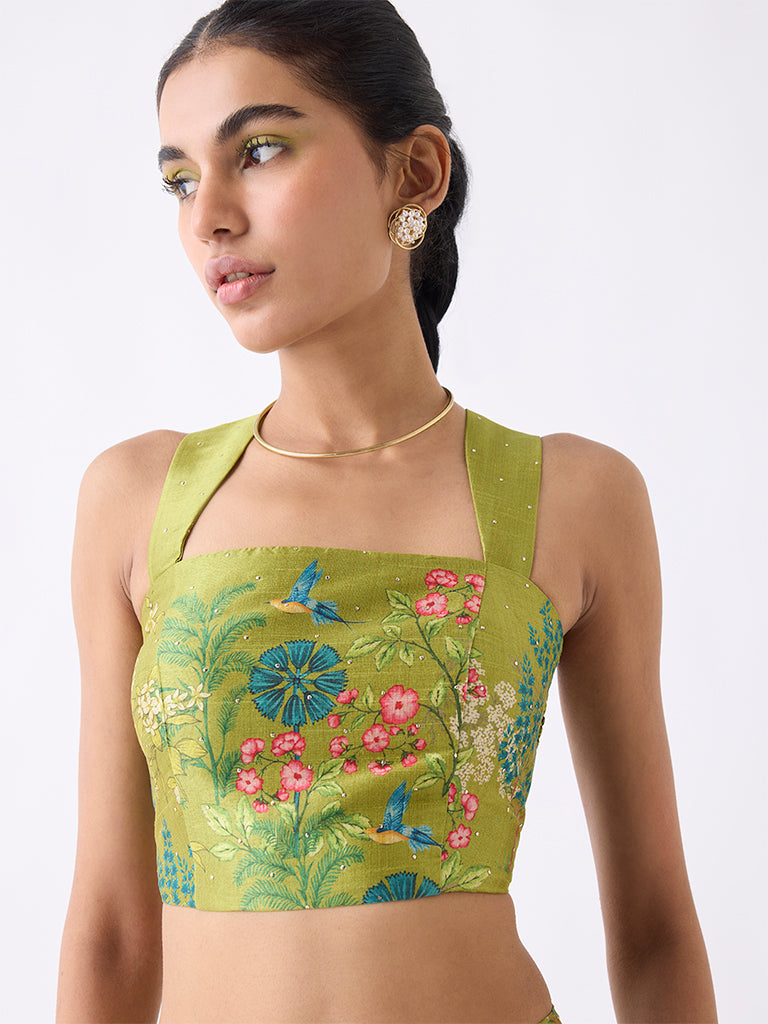 Vibrant and effortlessly chic. this lime ethnic top from Vark is adorned with botanical-inspired motifs that celebrate nature in style. Woven from a breathable fabric. it features a square neck and sleeveless silhouette for a modern look. The smocked back ensures a personalised fit. while its lively hue makes it perfect to pair with palazzos and skirts alike.