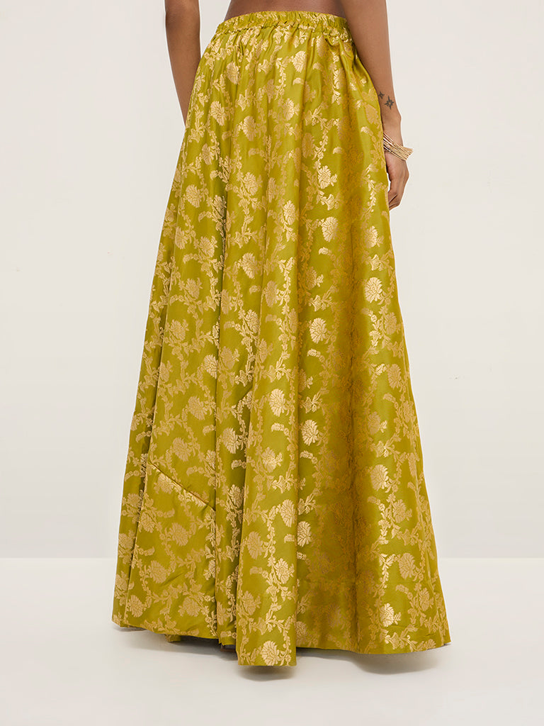Vark Lime Brocade High-Rise Skirt