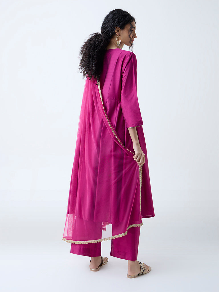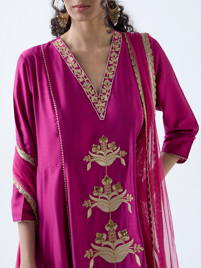 Vark Magenta Embroidered Anarkali Ethnic Set