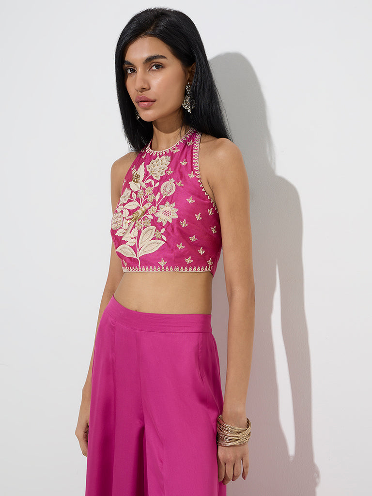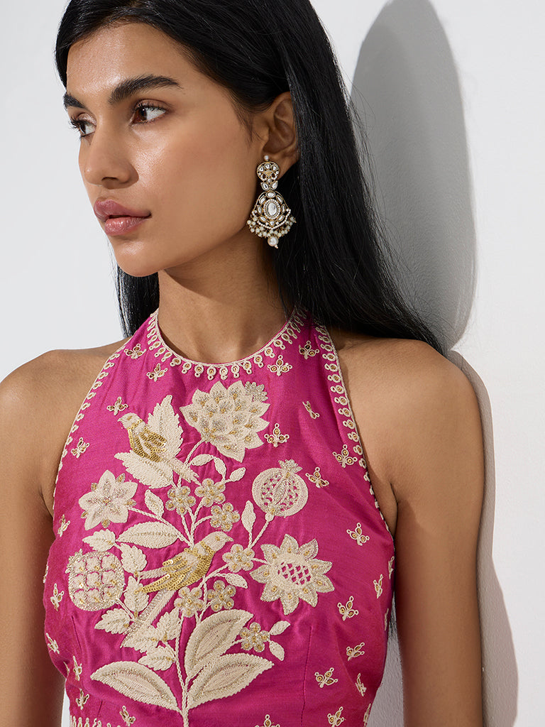 Be the first to review “Vark Magenta Floral Embroidered Halter Neck Top”