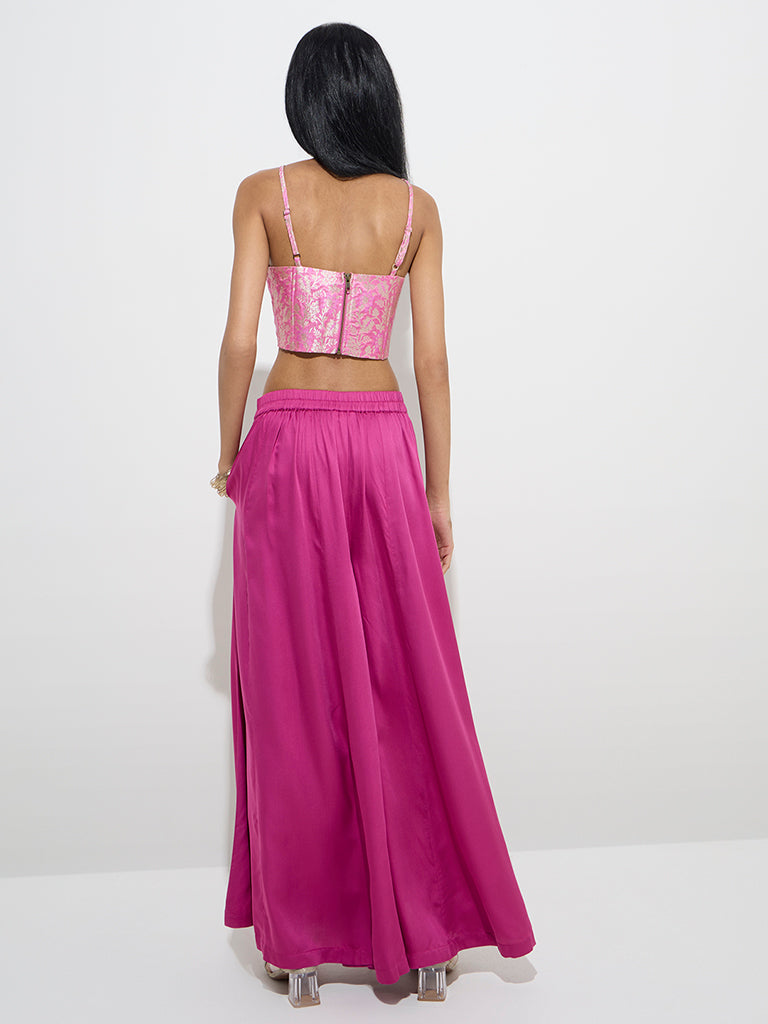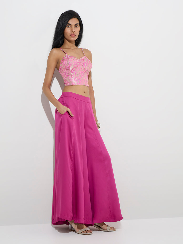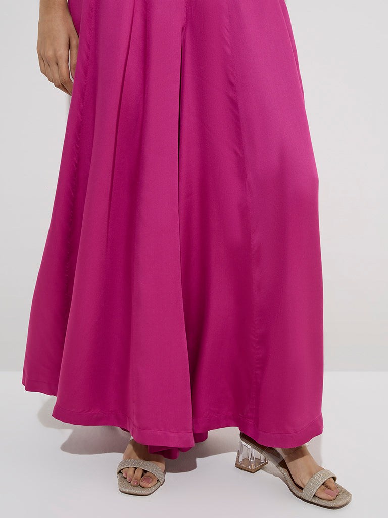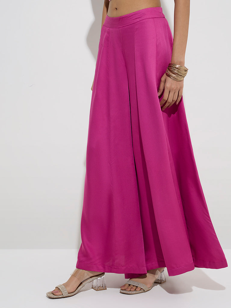 Add a touch of effortless elegance to your ethnic wardrobe with these magenta palazzos from Vark. Built from quality fabric. it comes with an elasticated waistband for comfort. Finished with side pockets for added practicality.