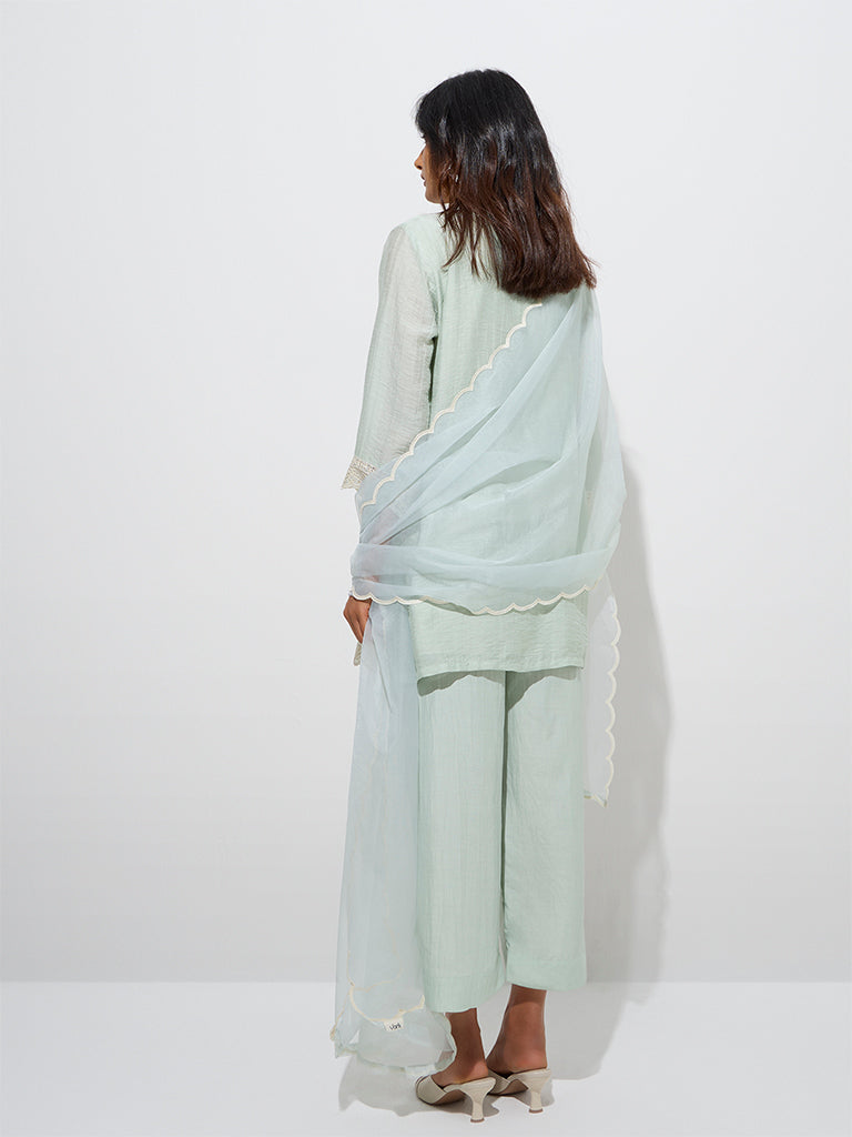 Vark Mint Straight Kurti. Palazzos and Dupatta Set