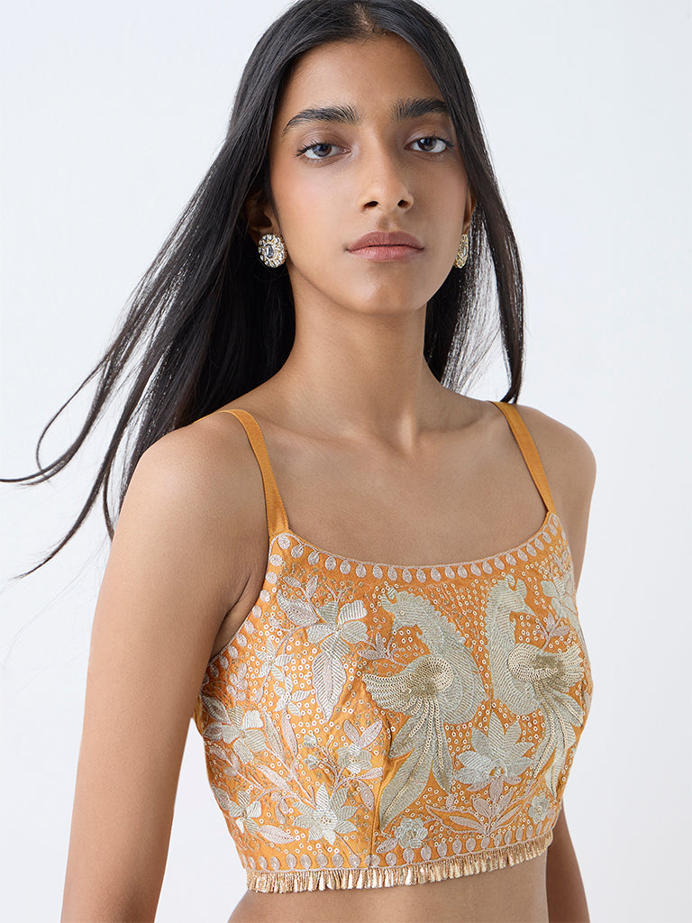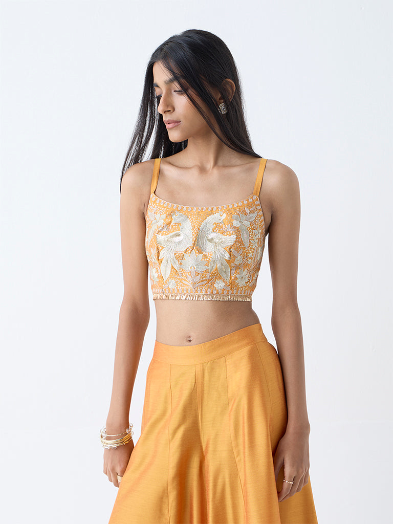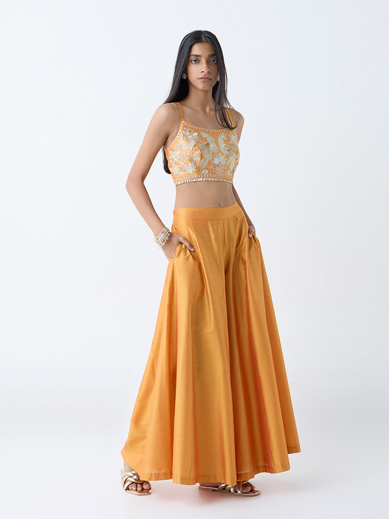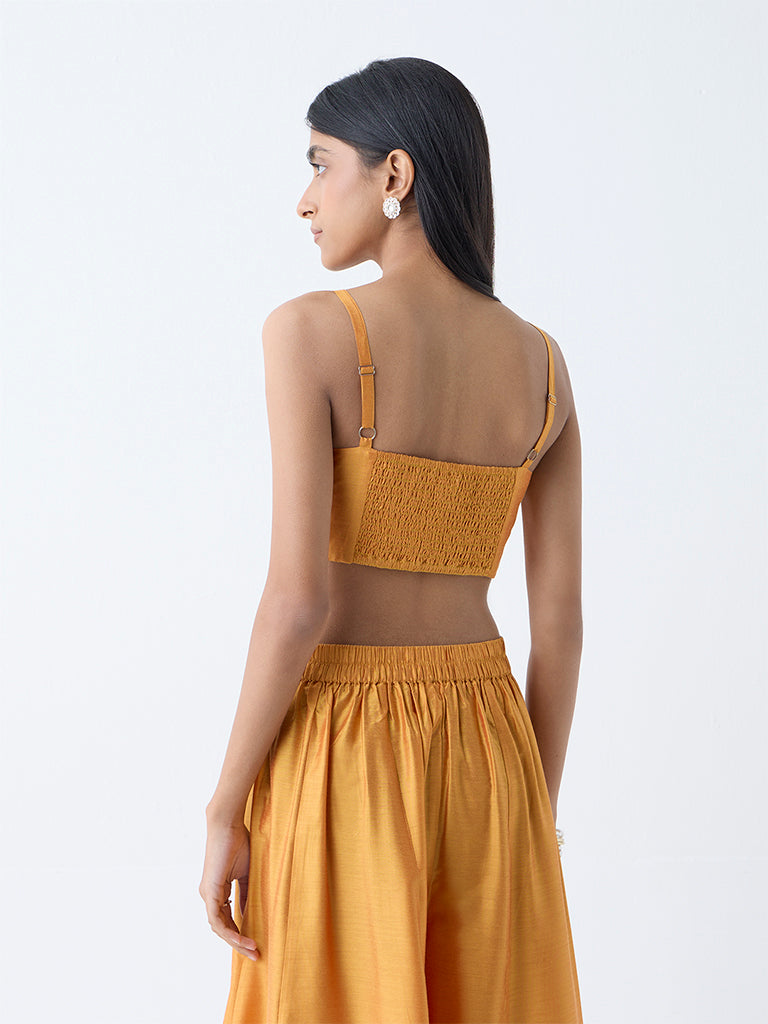 Turn heads this festive season with Vark’s mustard ethnic top. where vibrant colour meets delicate craftsmanship. Exquisite floral and sequin embroidery add thoughtful detailing. while the high-quality fabric ensures all-day ease. Finished with a scoop neck. adjustable shoulder straps. and a smocked back. this piece pairs beautifully with statement bottoms for a standout celebration look.